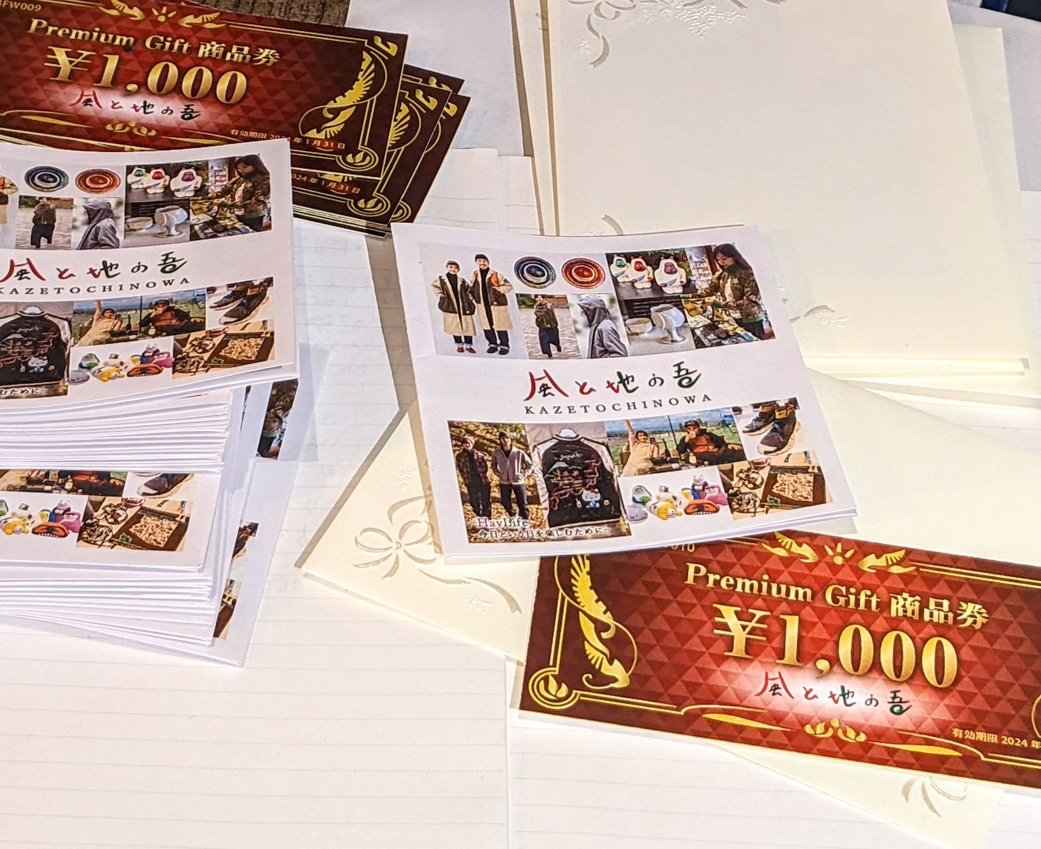 お客様からのご要望で 忘年会の景品を探しに来られた際に いろいろお話をして 最終的には お店の商品券をお渡しすることになりました。