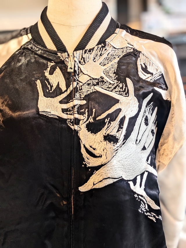 TMEJ-002 『冨江』柄刺繍スカジャンリバ-シブル ジャケット ブラック×シルバ- M・L・XL・XXL