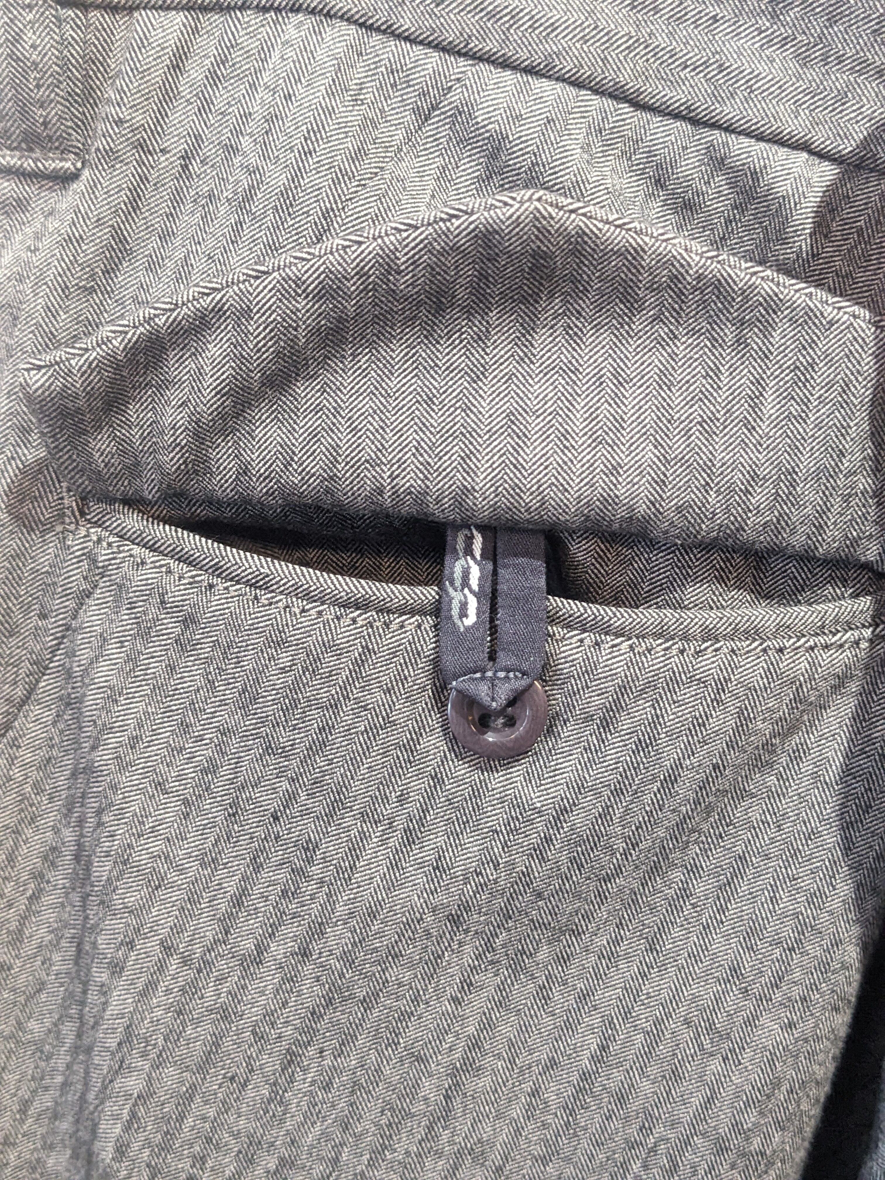 右ポケットの中にチェンジングポケット、後ろポケットのフラップの裏にはボタンループ。