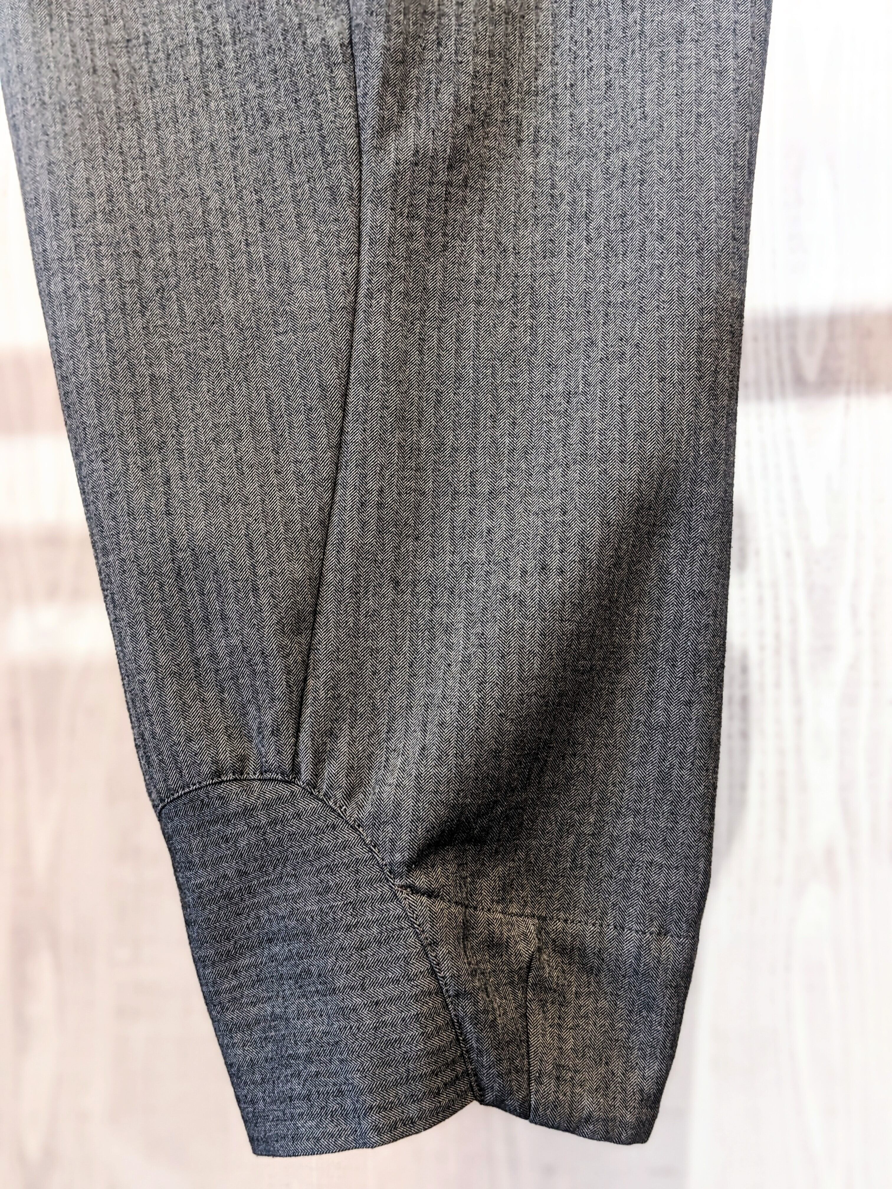 触るとウールライクなのですが、実はポリエステル48% レーヨン48% ポリウレタン4%の素材を使用したウールタッチでストレッチ性のある素材を使用。ストレッチ性と保温性を兼備えた七分パンツです。