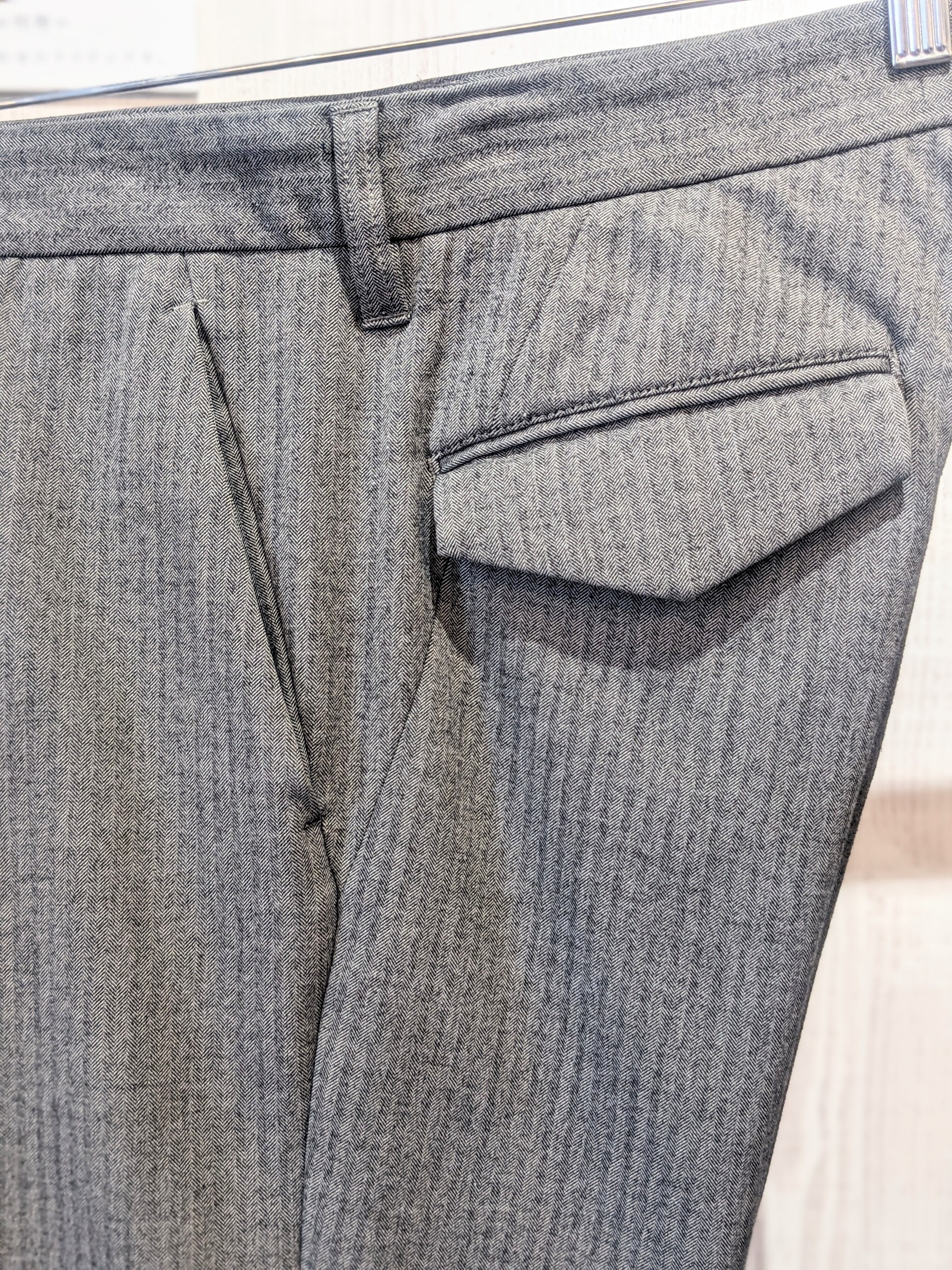 かんぬきや玉縁などテーラ-のパンツのような丁寧で綺麗なつくりになっています。