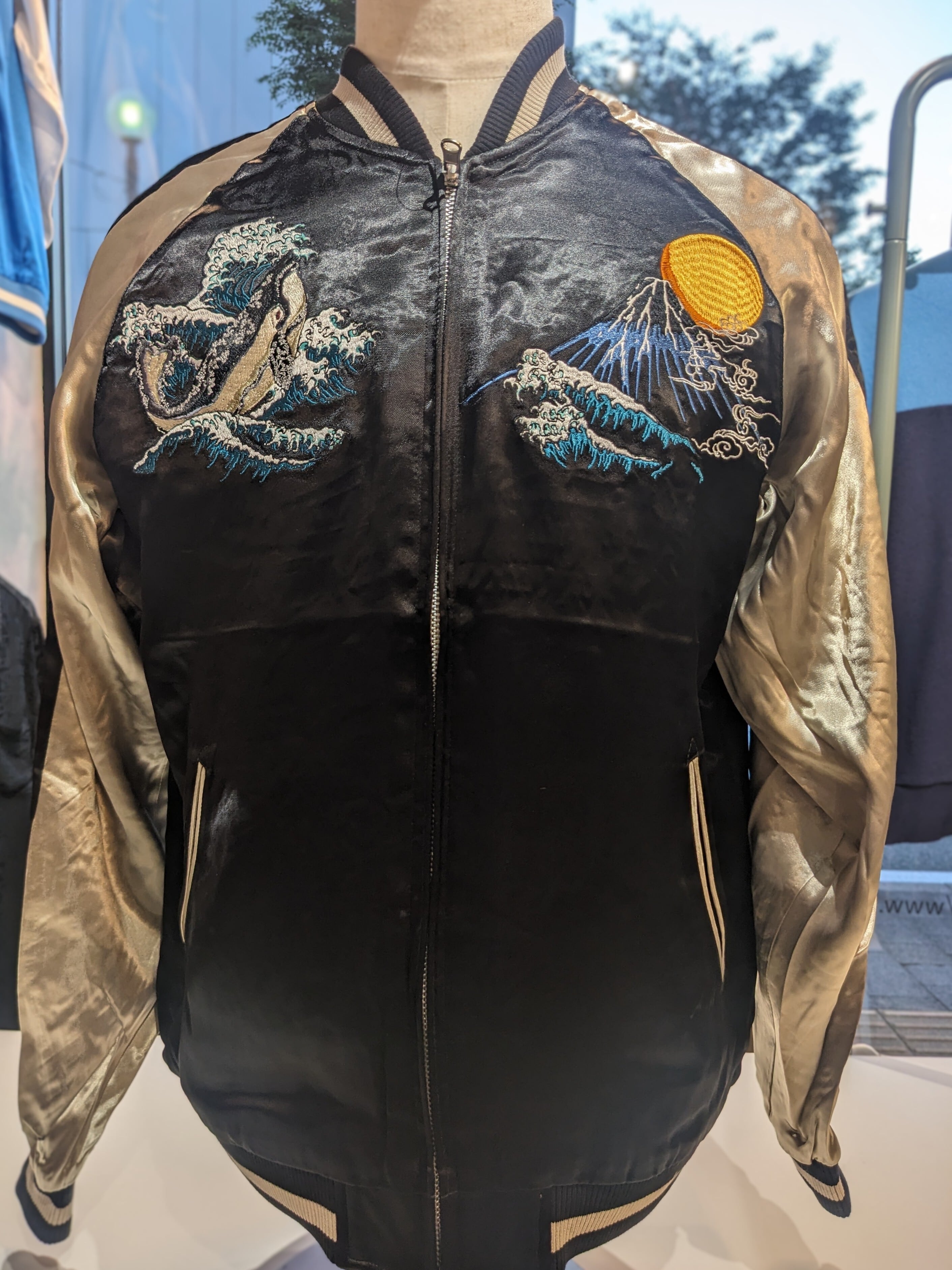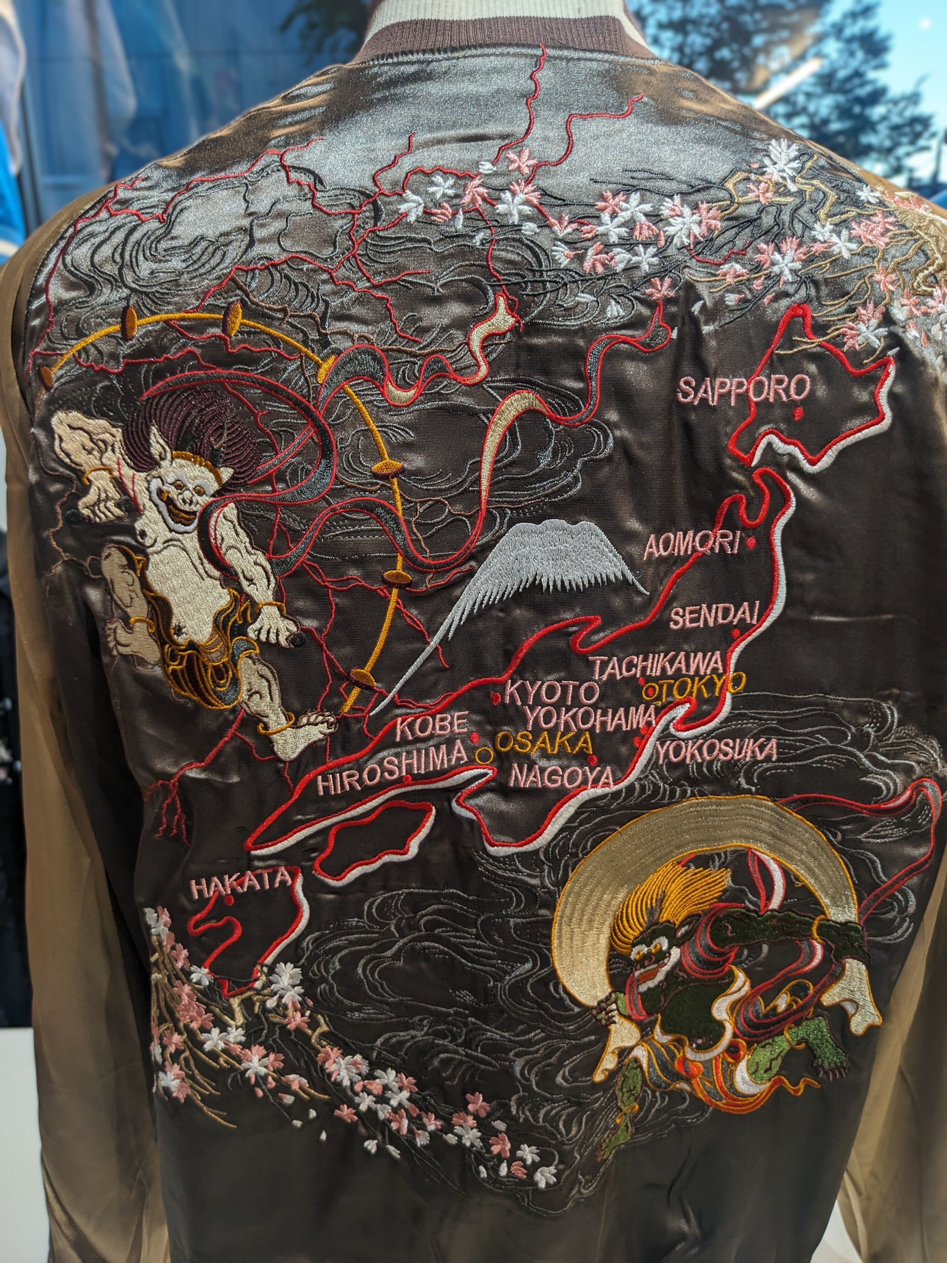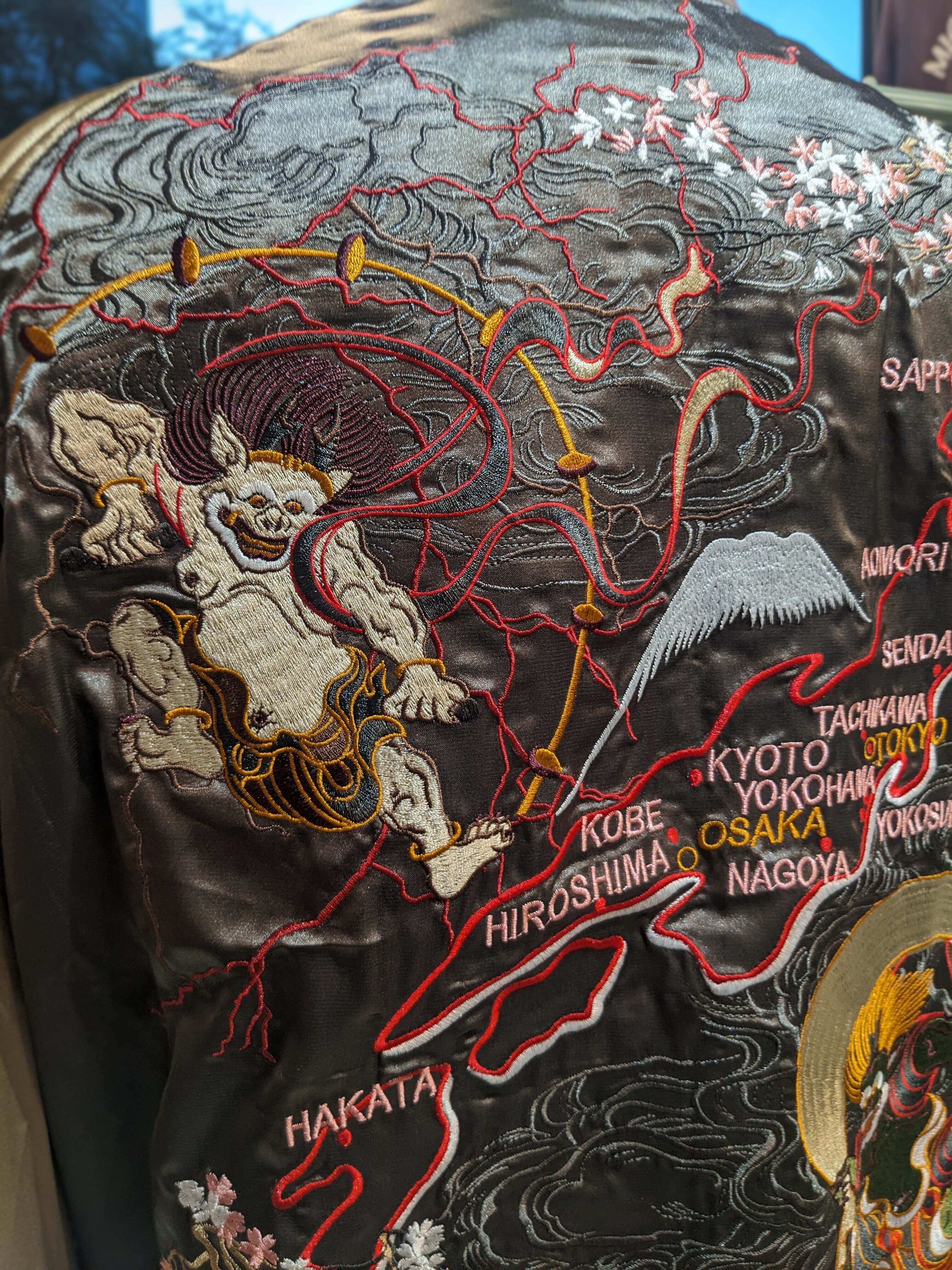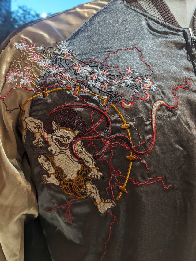 風品雷神、富士に桜を合わせてスカジャンらしいビンテージライクな