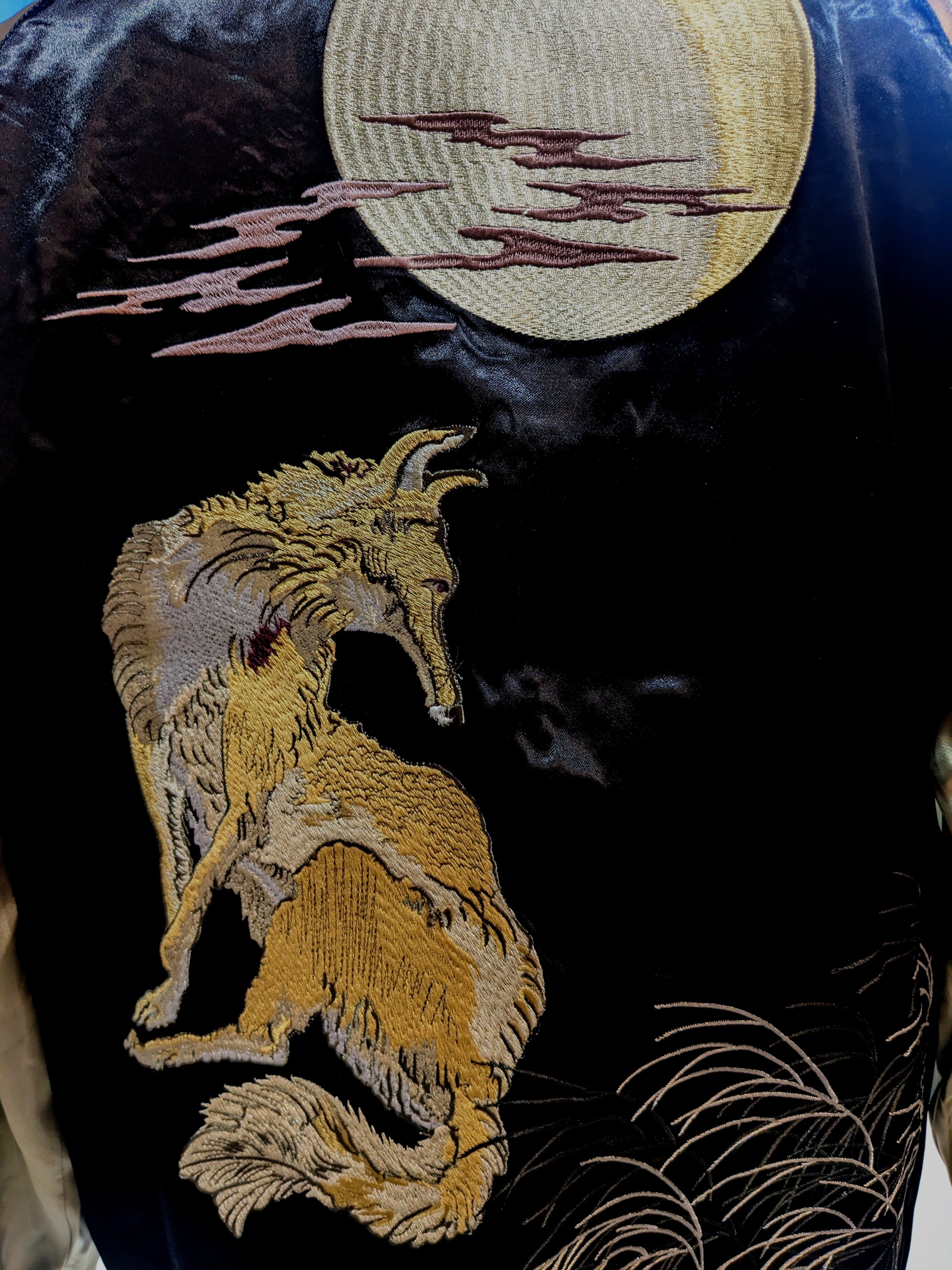 月に狐 & 白孔雀 刺繍 リバ-シブルスカジャン