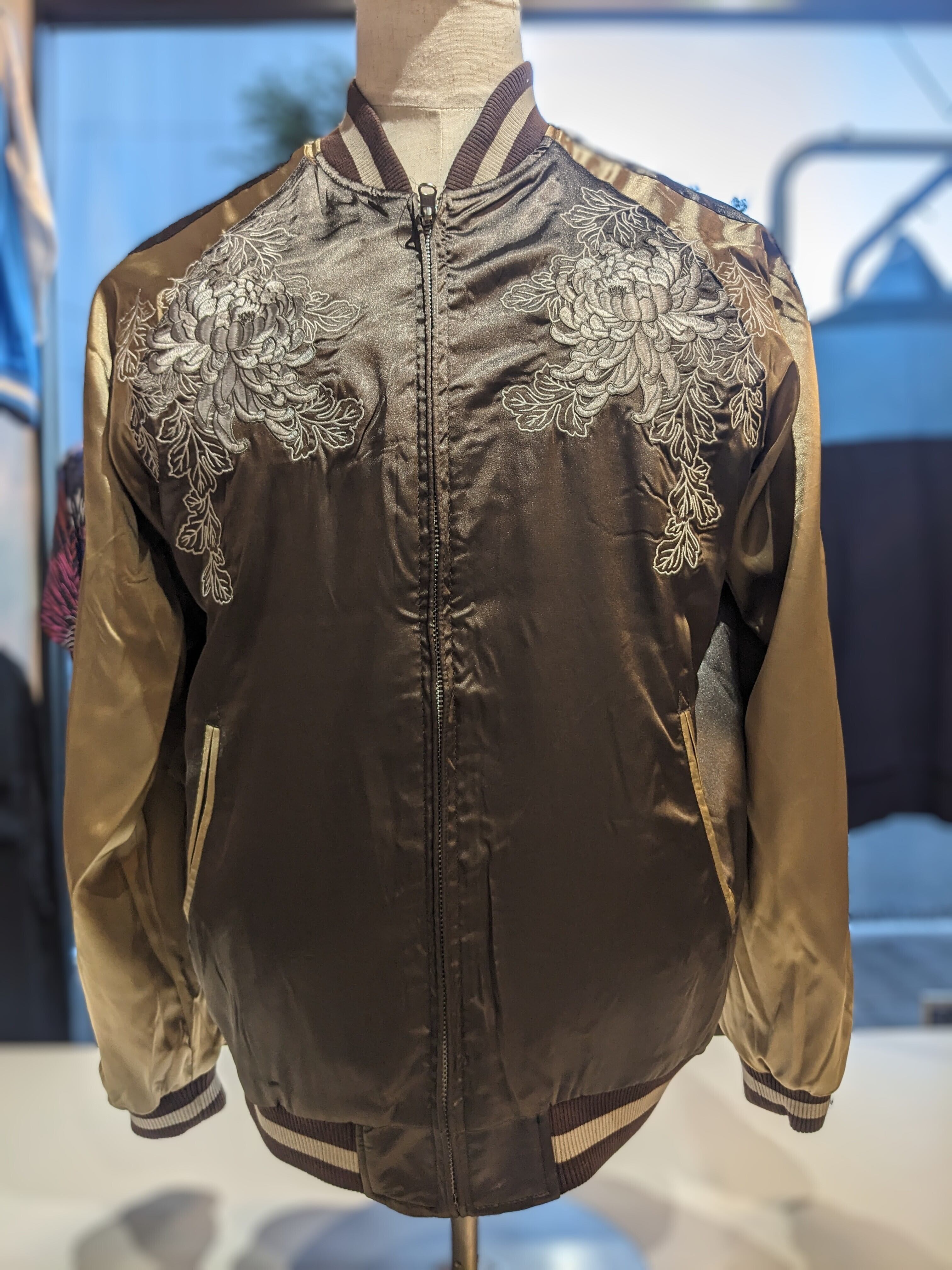 月に狐 & 白孔雀 刺繍 リバ-シブルスカジャン JSKJ-520 Japanesque BLACK&CHACOAL S/M/L/XL/XXL