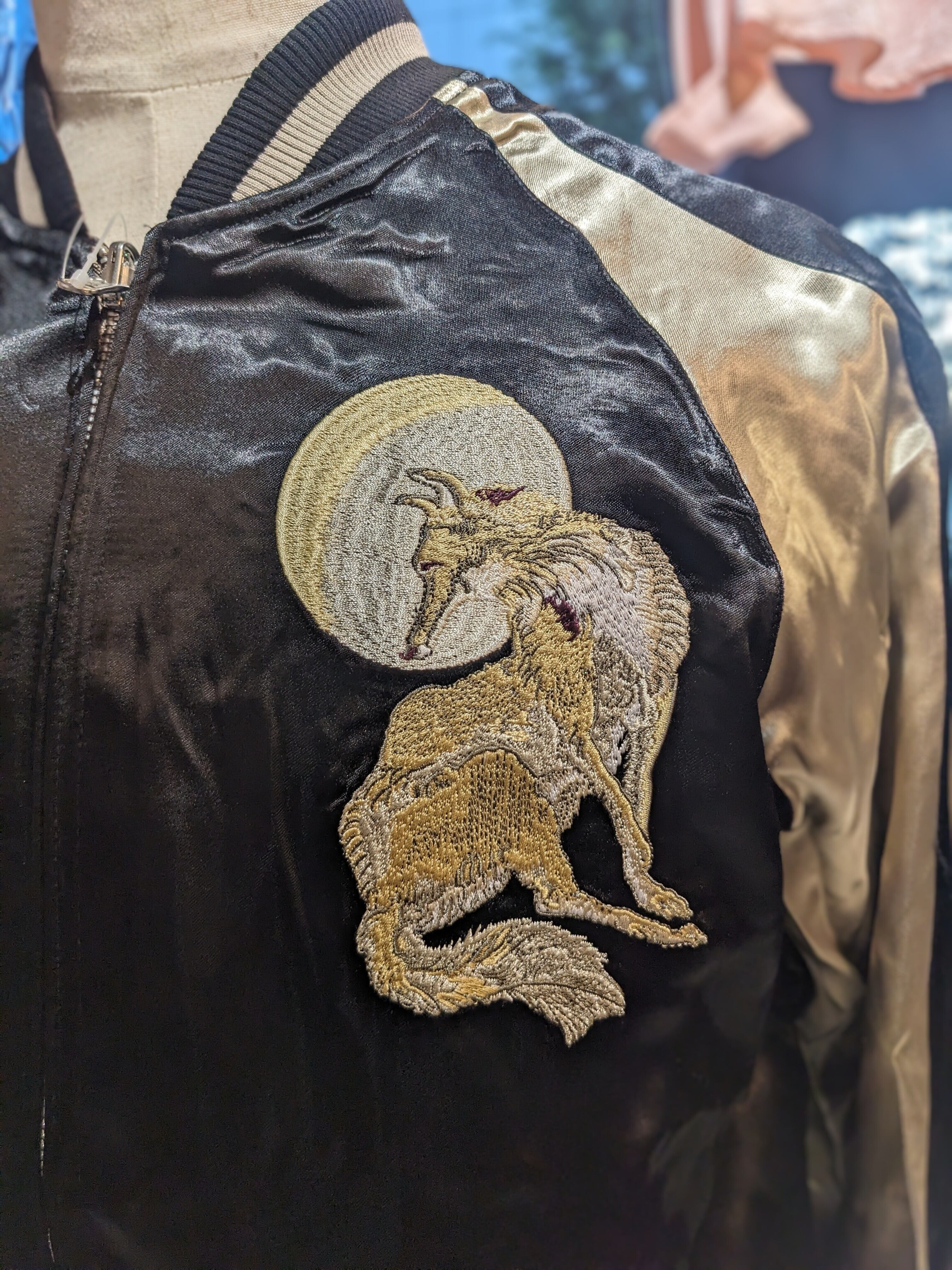 『 月に狐 & 白孔雀 刺繍 リバ-シブルスカジャン』
