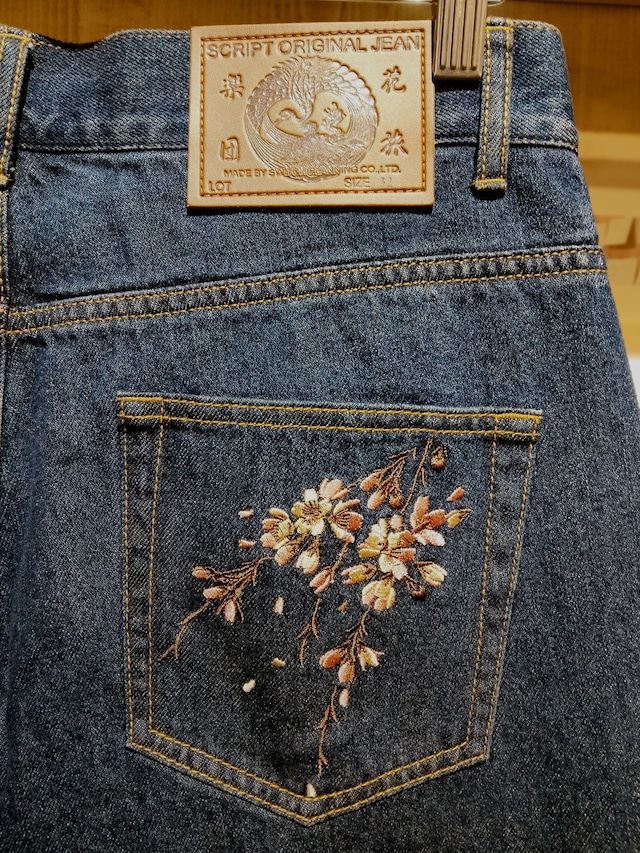 新入荷 新品 SP-001 桜刺繍デニムパンツ インディゴ 32/34/36/38/40/42 花旅楽団 SP-001