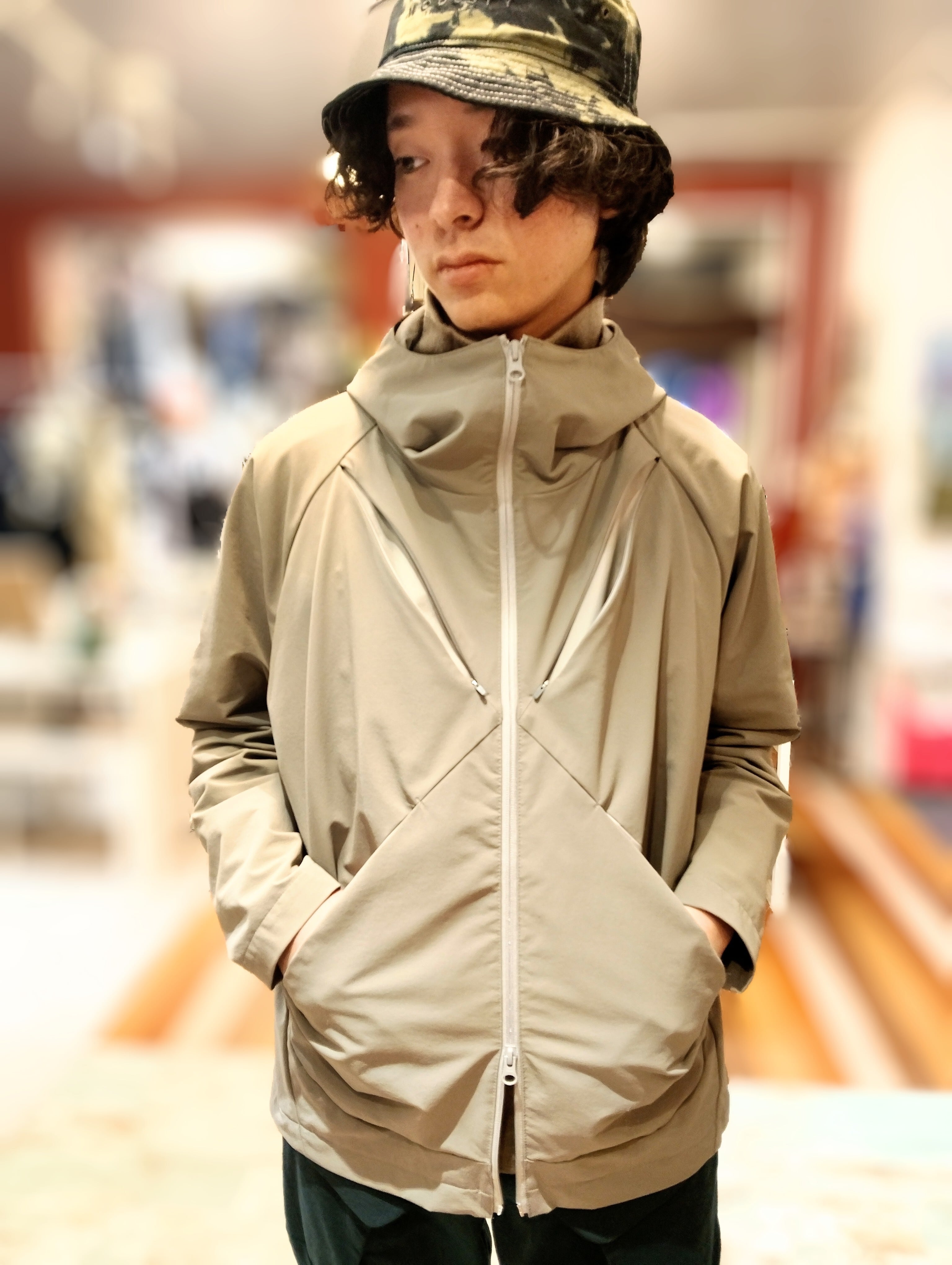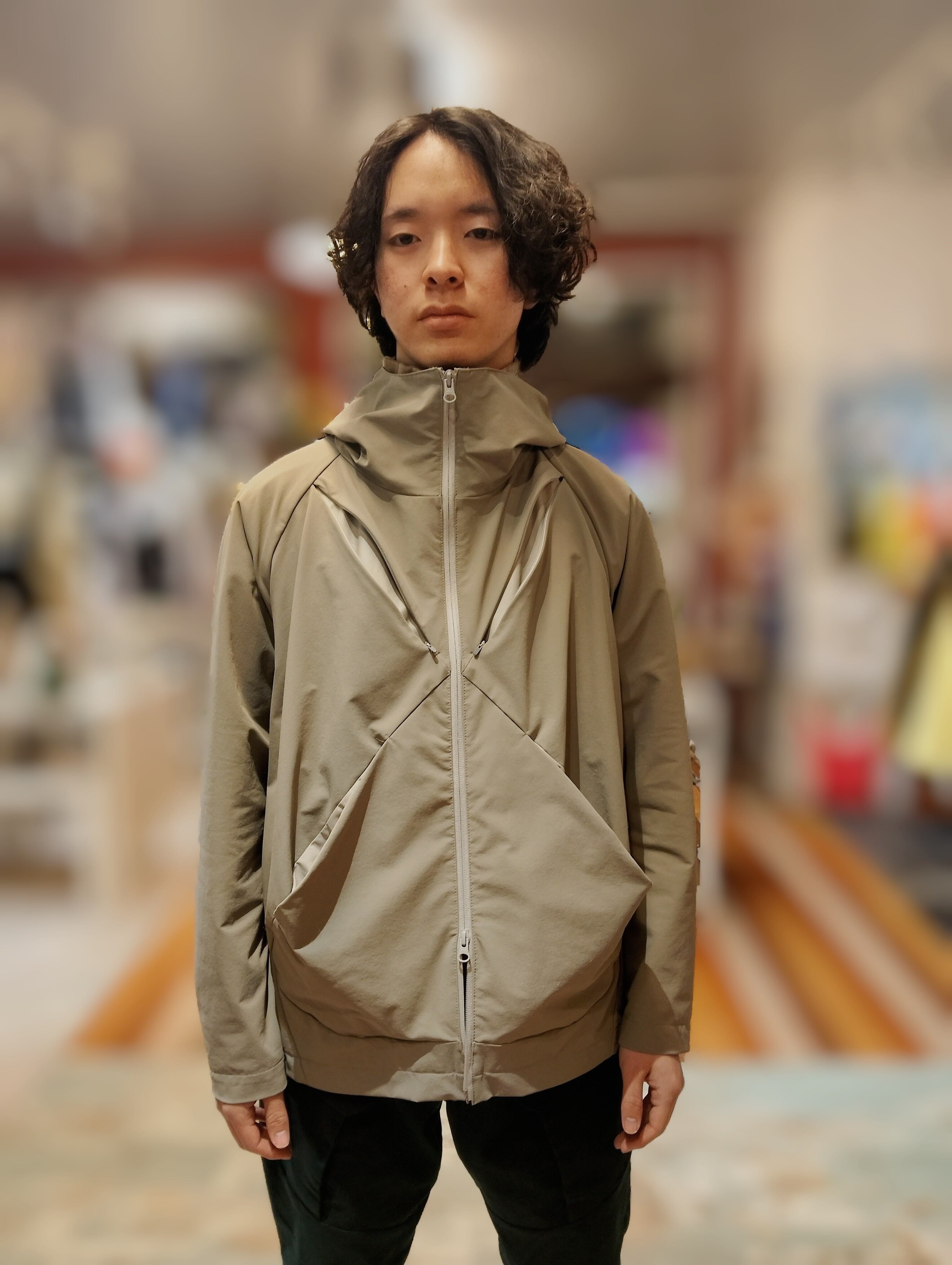 撥水2WAYストレッチでマットな質感の素材を使用し、着やすさと機能性・テックな表情を併せ持っています。