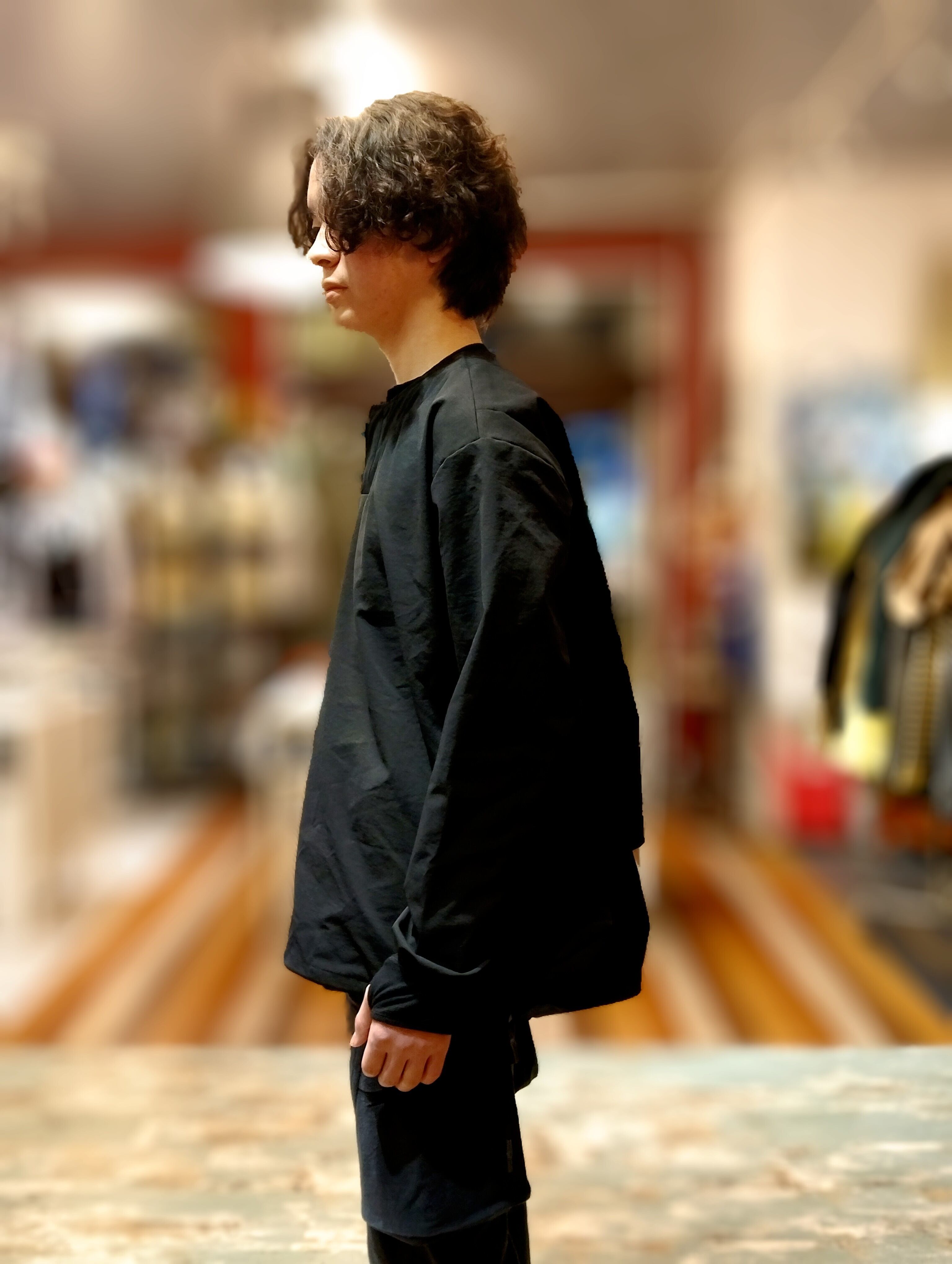 デザインはかぶりのプルオーバーデザインに首元は隠しヘンリーネック仕様を採用。