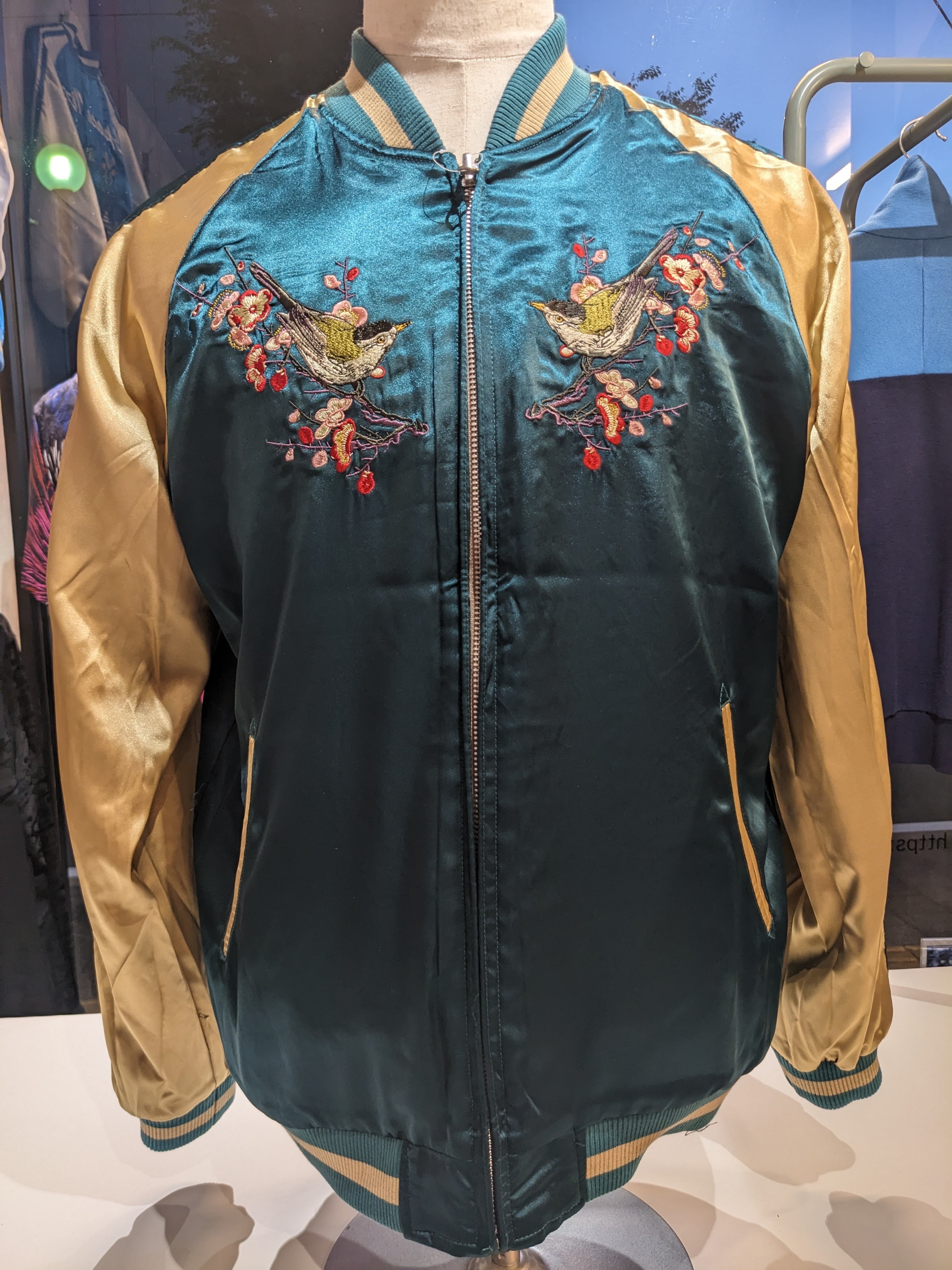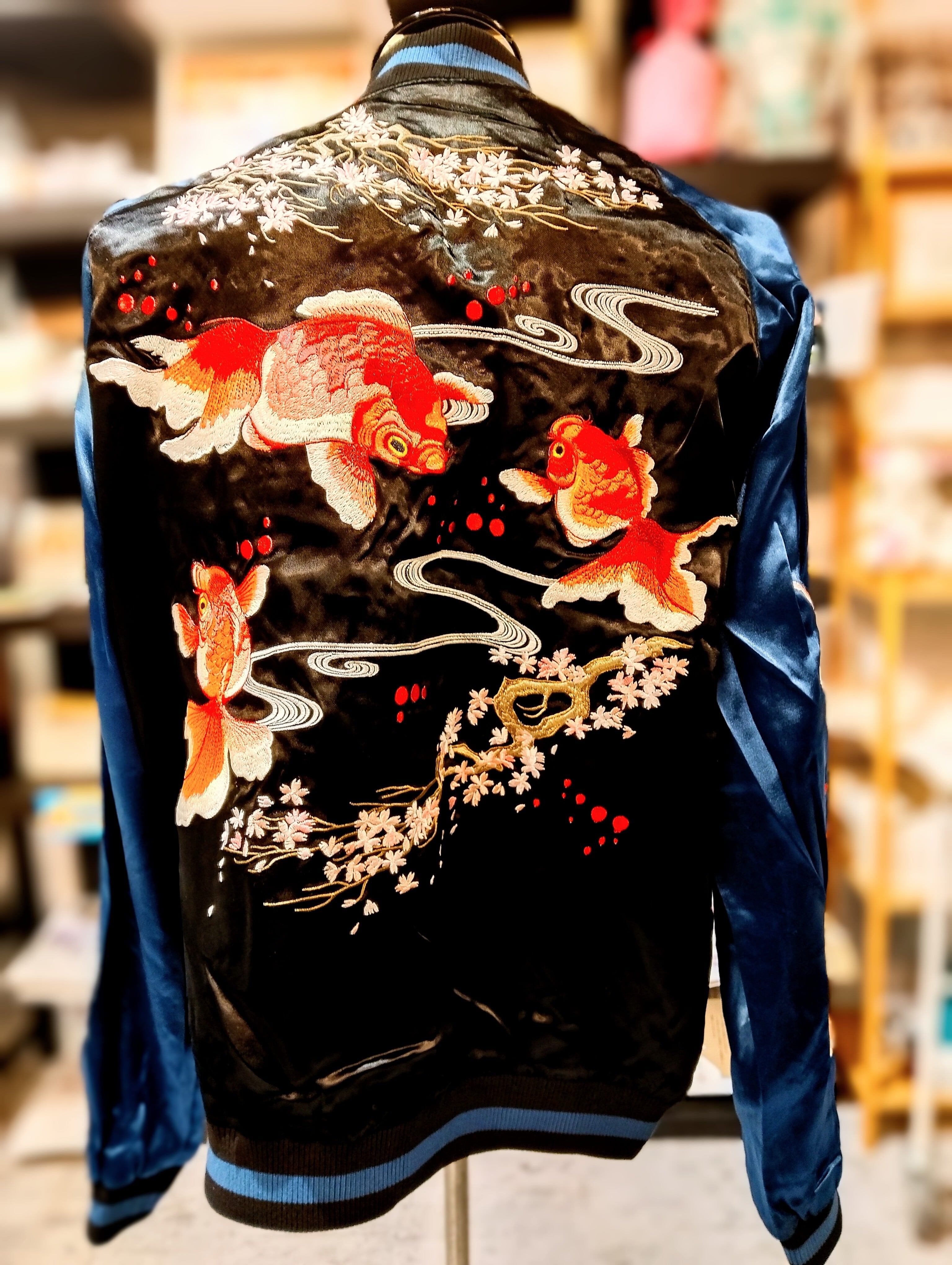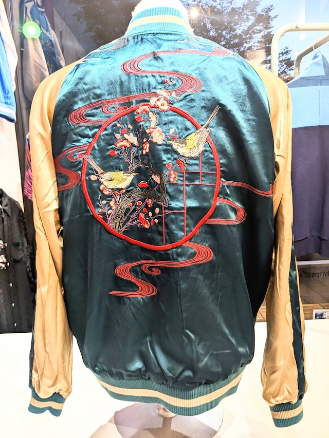 桜金魚 & 梅とウグイス 刺繍 リバ-シブルスカジャン JSKJ-518 Japanesque BLACK&TOURQUOISE S/M/L/XL/XXL