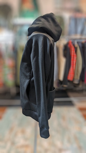 このパーカーは ステッチが見えない様にした事で 前身のカンガルーポケットまで一見すると分からないシルエットになっております。