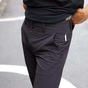ナイロン4WAYクロス素材を使用し縦横自在に伸びる収縮性で、ほぼレーパン並みの動き易さにありながら、普通に街を歩いていても恥ずかしくない、いやむしろ カッコイイパンツです✨