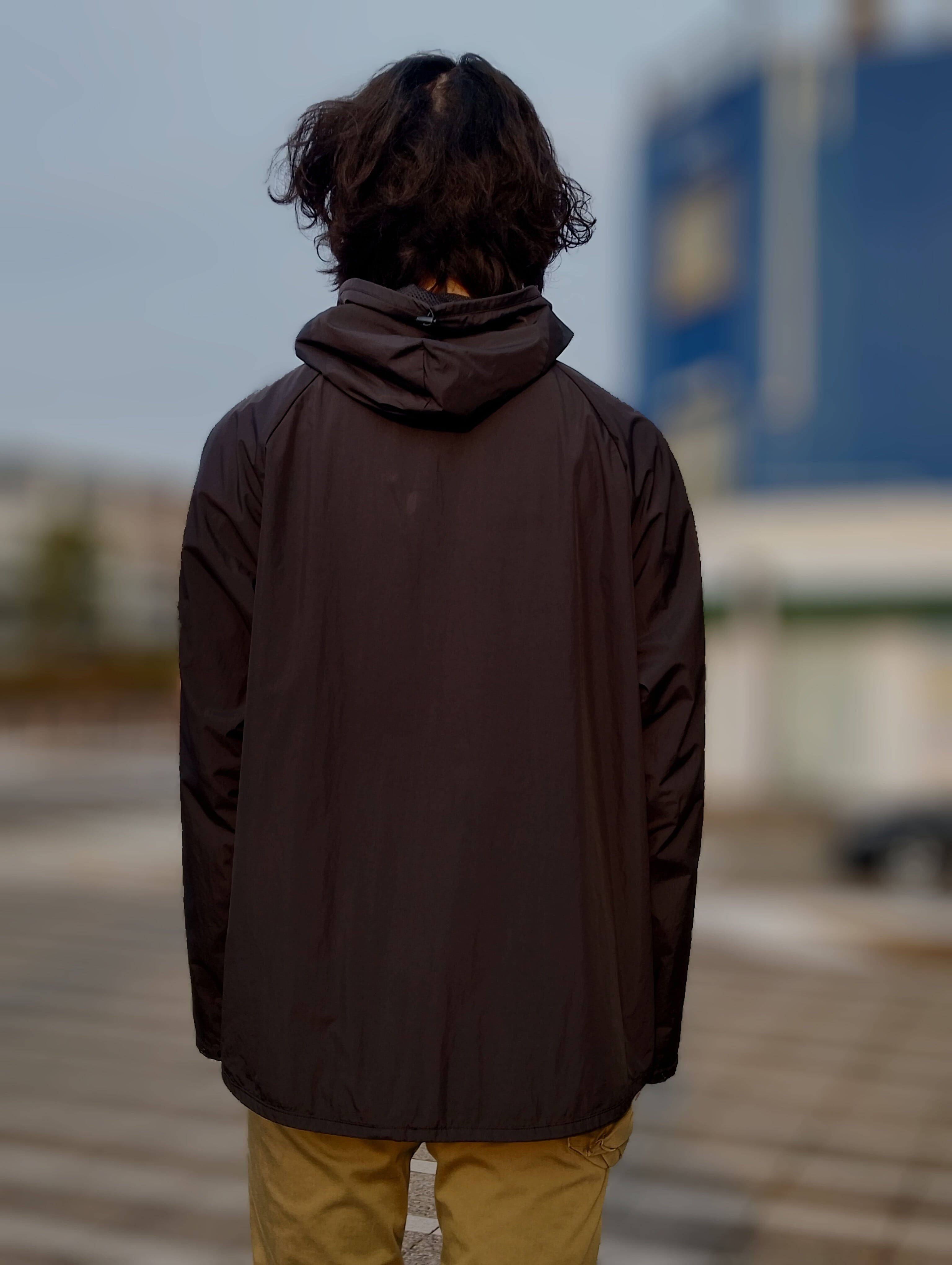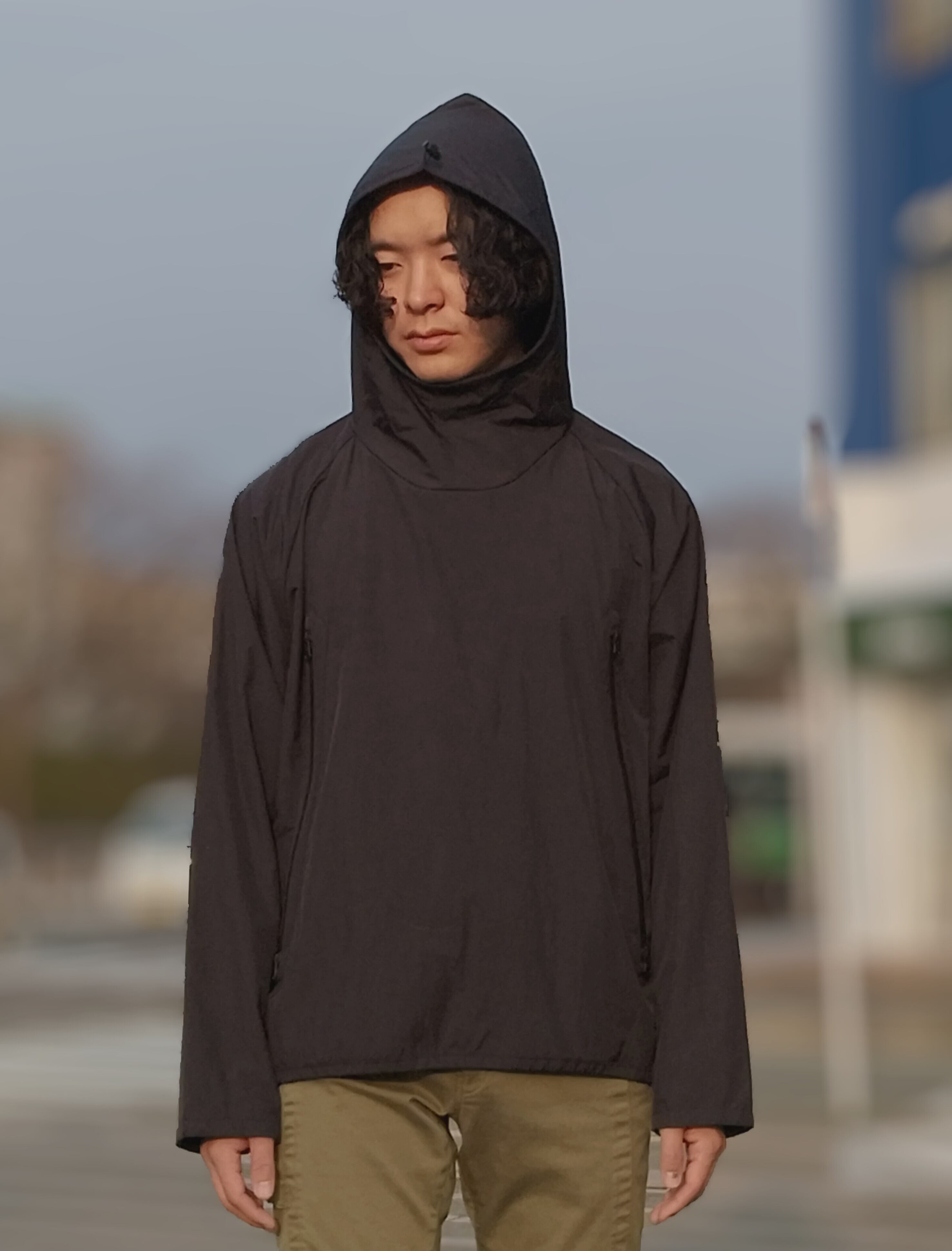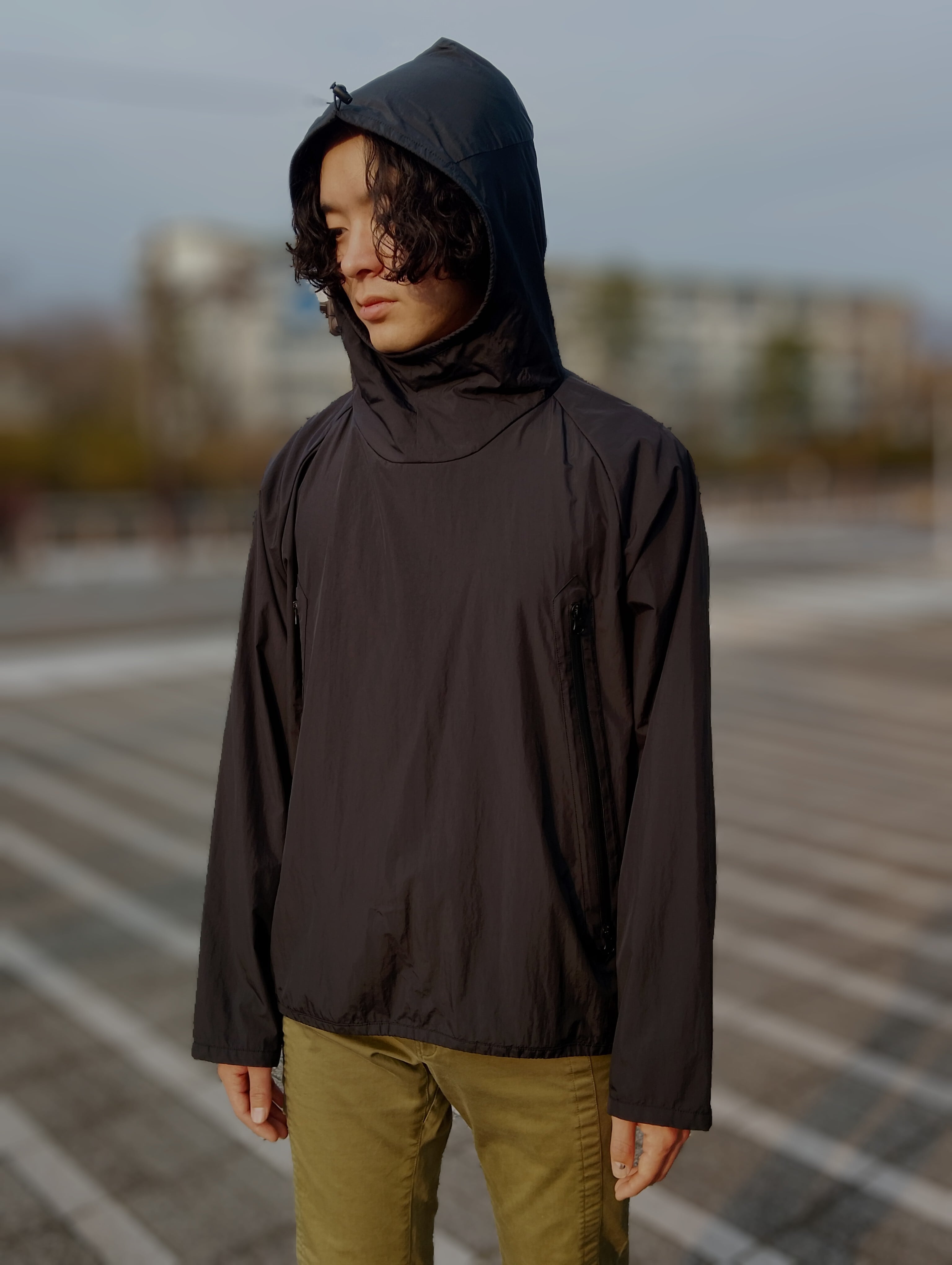 内側は総メッシュのマットな高級感のあるBlack Nylon Pullover Parka