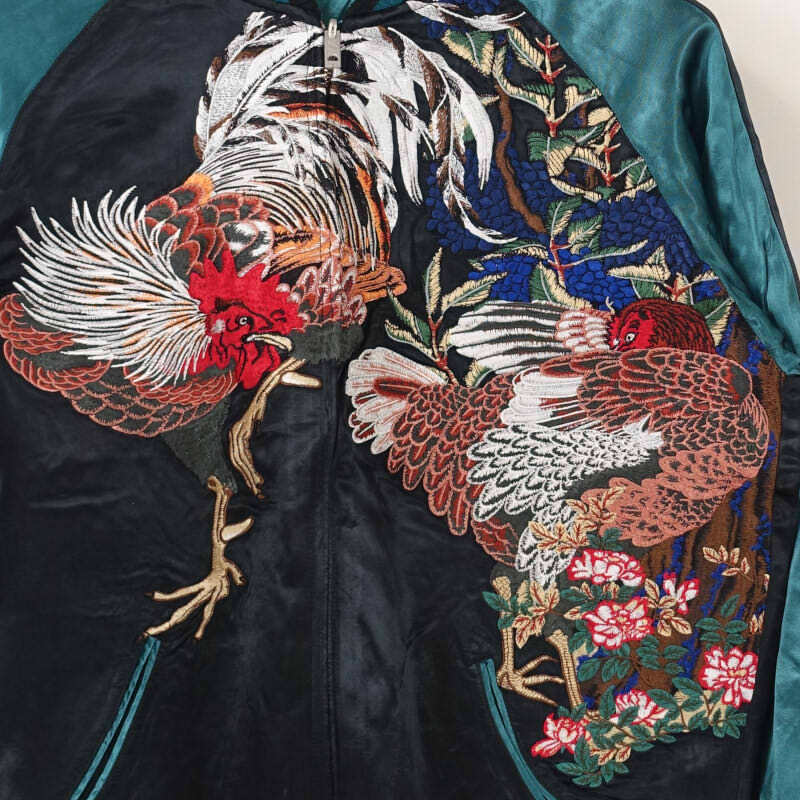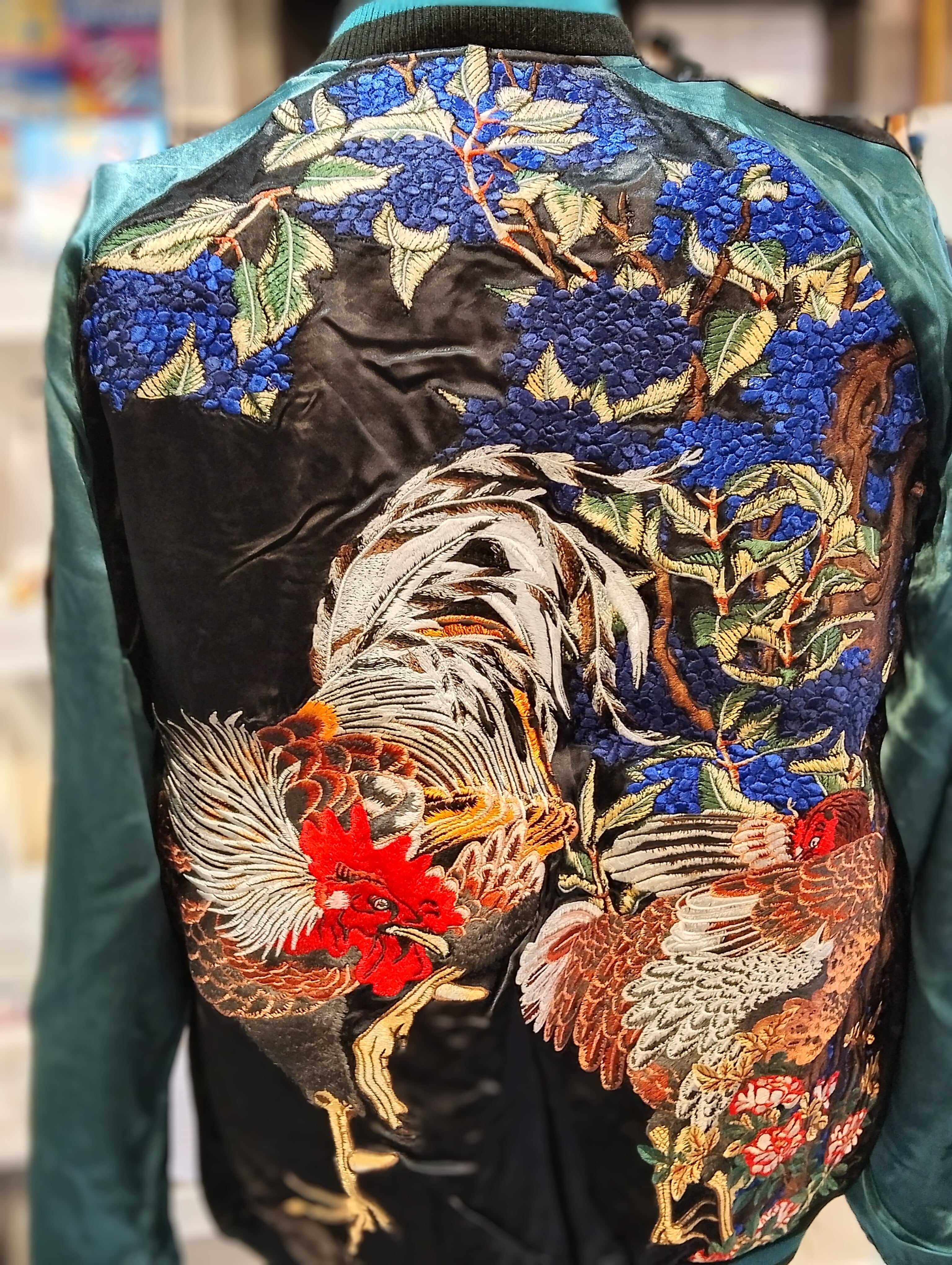『 鶏と紫陽花 刺繍 リバ-シブルスカジャン 』