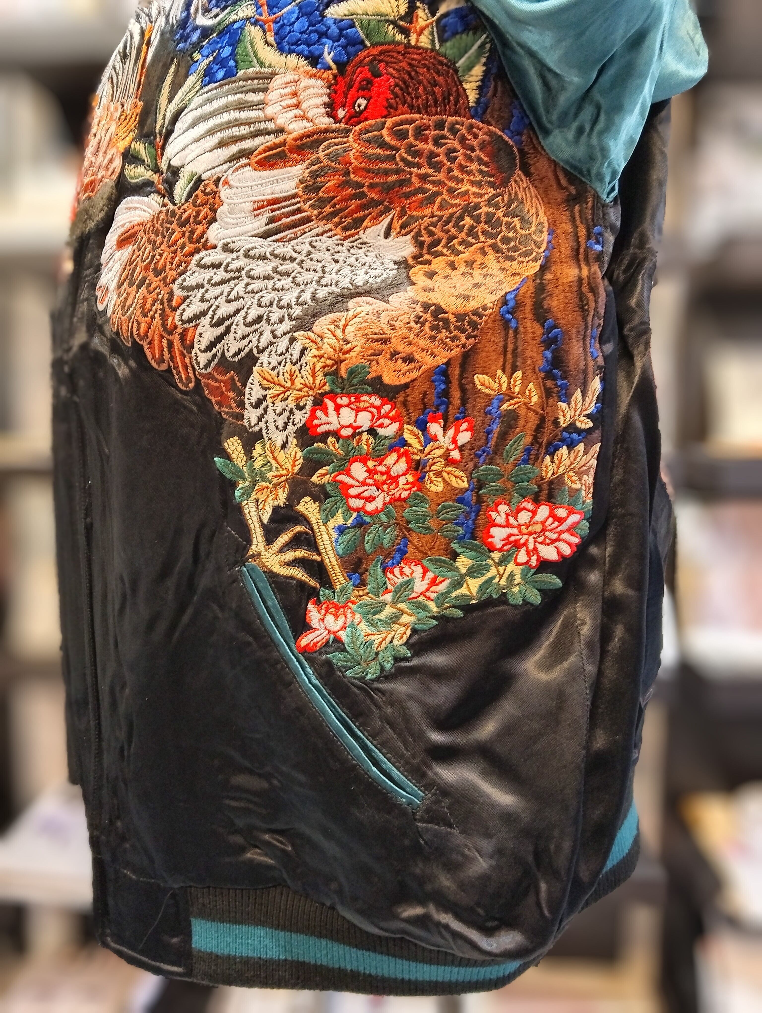 鶏と紫陽花 刺繍 リバ-シブルスカジャン SKJ-017 BLACK 3XL