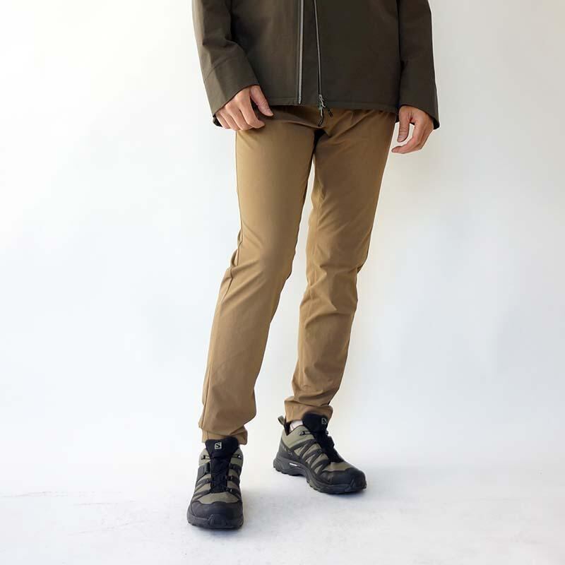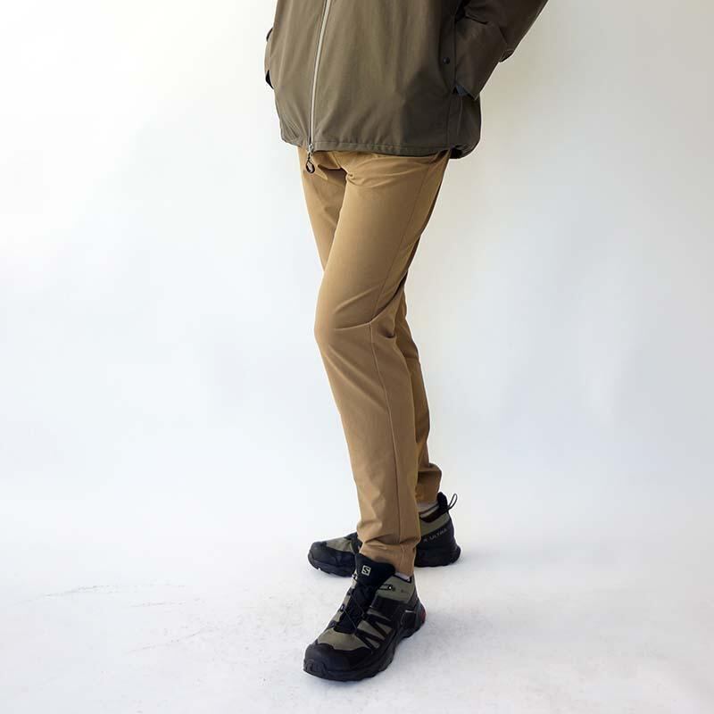 十分な伸縮性とドライでマットな質感がスポーツカジュアルなテイストを作り出す。