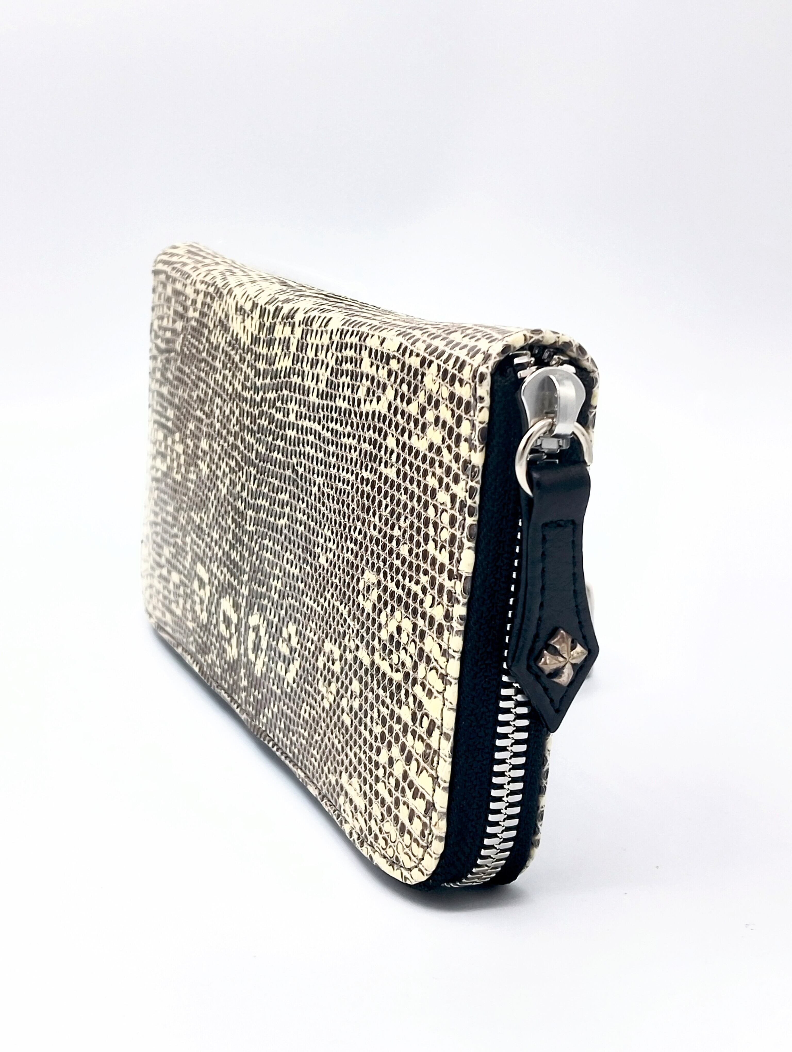 今回は、そんな斑紋をいかしたラウンドジップウォレットを制作致しました。