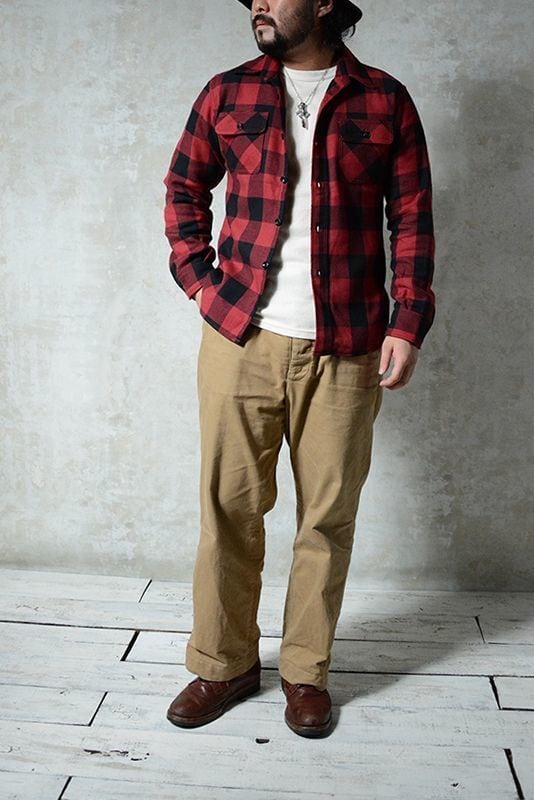 上半身が動き易く、バストから裾にかけてはスタイリッシュシルエットを持つデラックスウエアオリジナルの人気形状の商品。男女問わず肩幅・バストに動き易さを求める方は多く、見た目のシルエットを崩さずにマイナーチェンジを繰り返し仕上がった形状は10年以上もの期間人気を頂く商品となりました。この特殊形状と王道のバッファローチェック、そして 採算度外視のハイコストパフォーマンスとなる高品質ヘビーネルを是非お試しください。2021 年色登場!