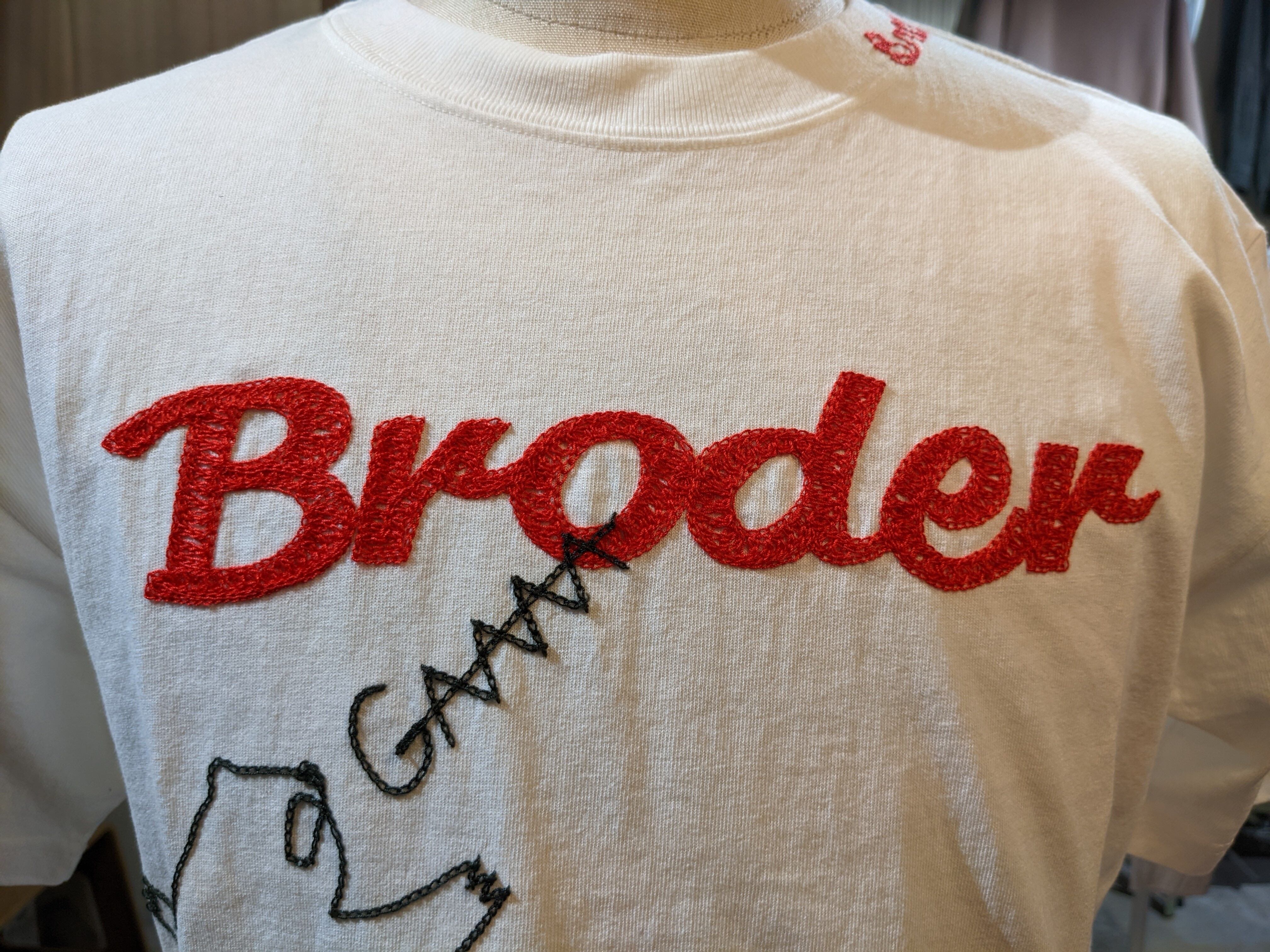 BRODRE ハンドル刺繍 BEAR Tシャツ M ホワイト [BR2014]