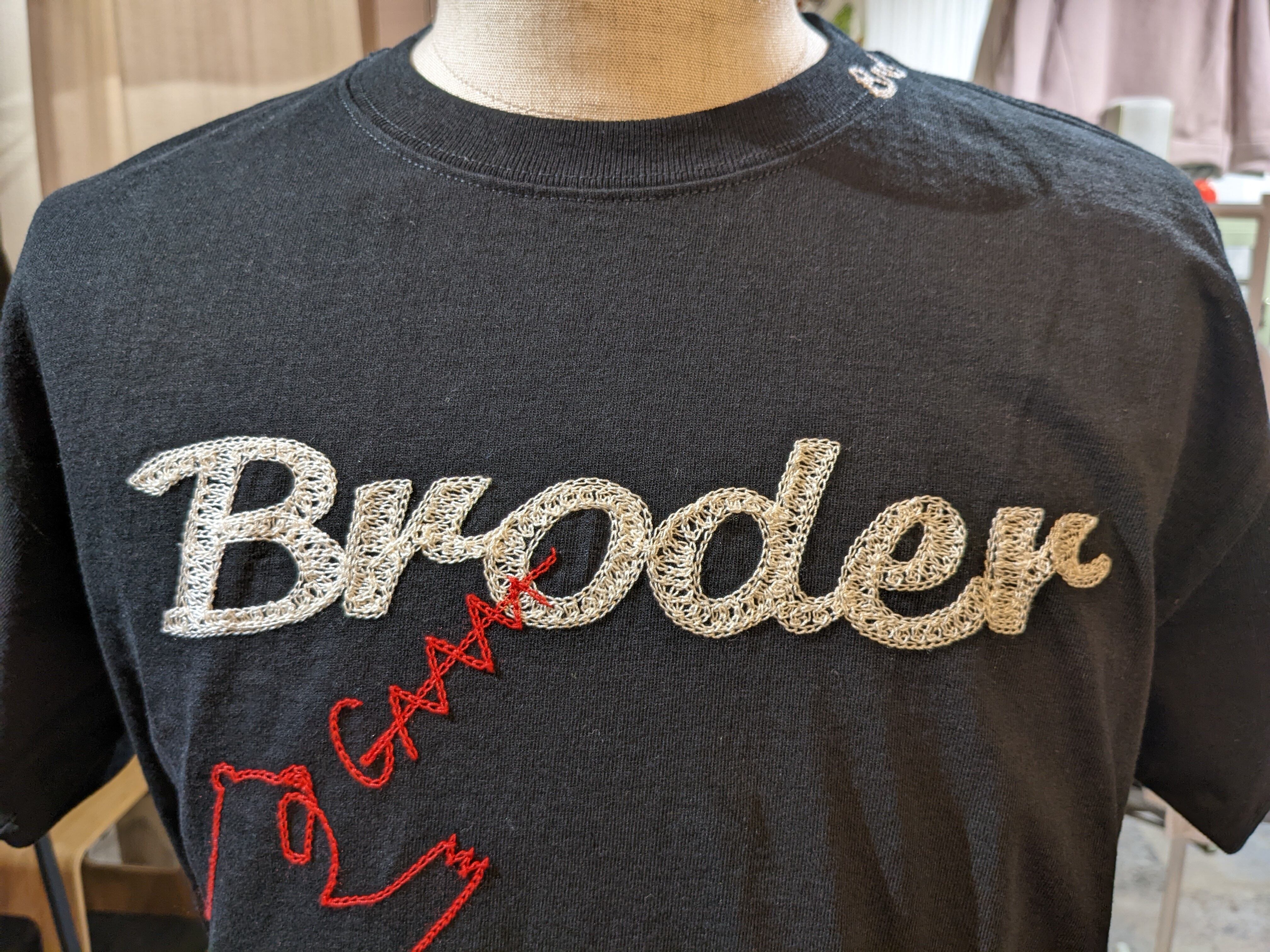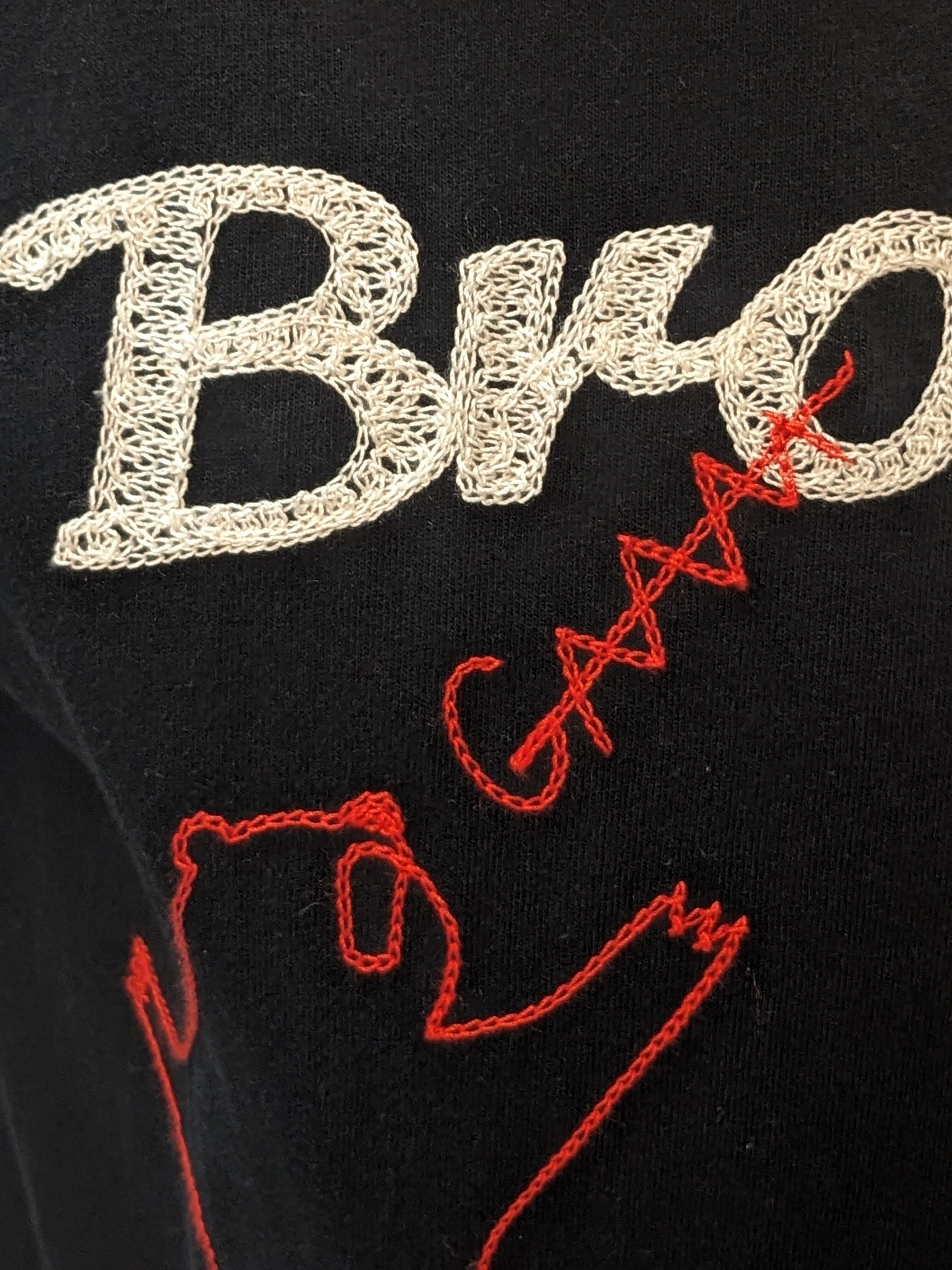 下の糸を、かぎ針で引っかけチェーンステッチで刺繍を施してます。