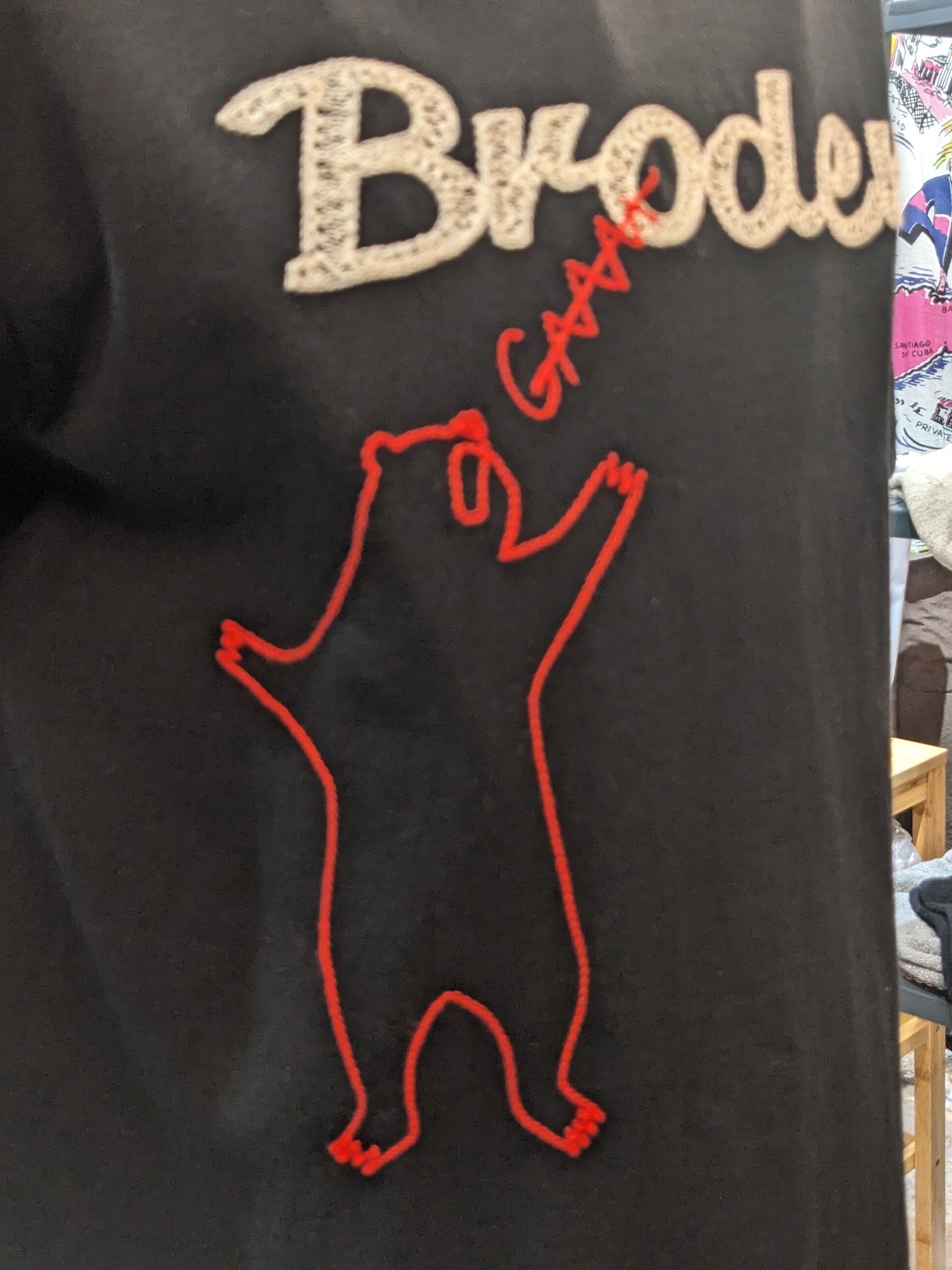 BRODRE ハンドル刺繍 BEAR Tシャツ M ブラック [BR2014]