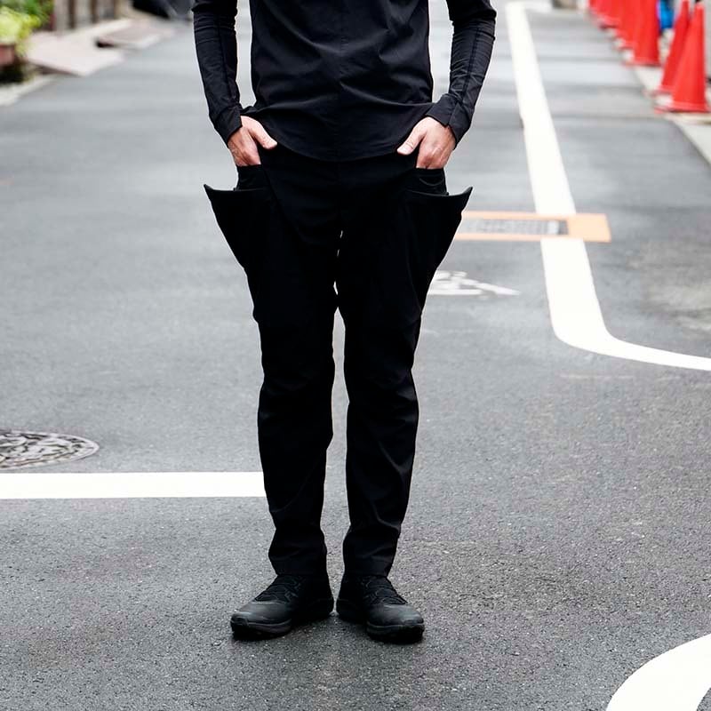 カーゴパンツなのに近未来的な雰囲気のある、3Dパターンのテーパードスタイル。