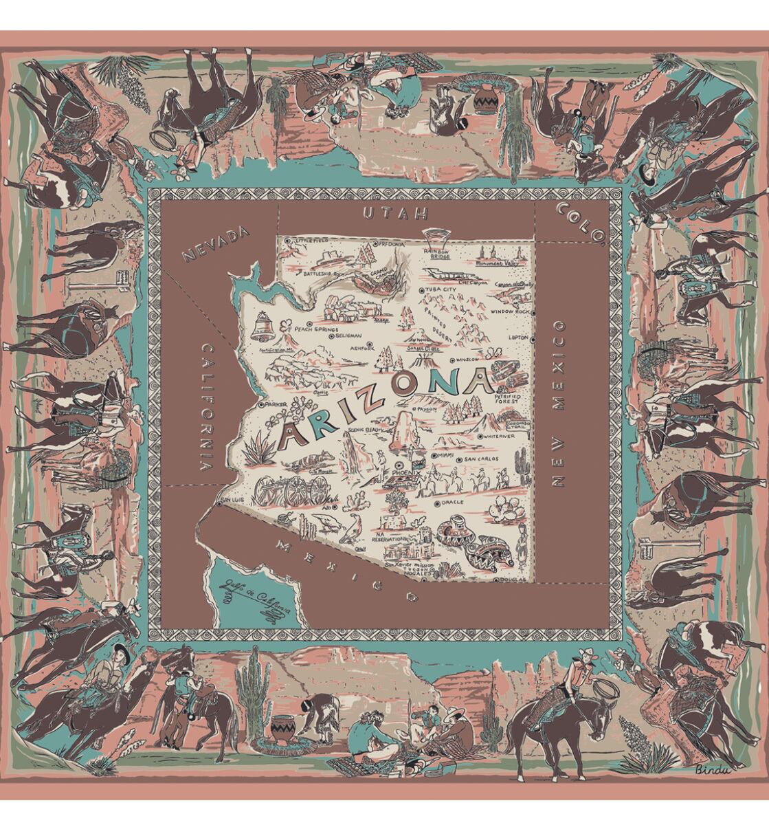 ビンテージ感のあるアリゾナ州、スーベニールマップ柄のバンダナです