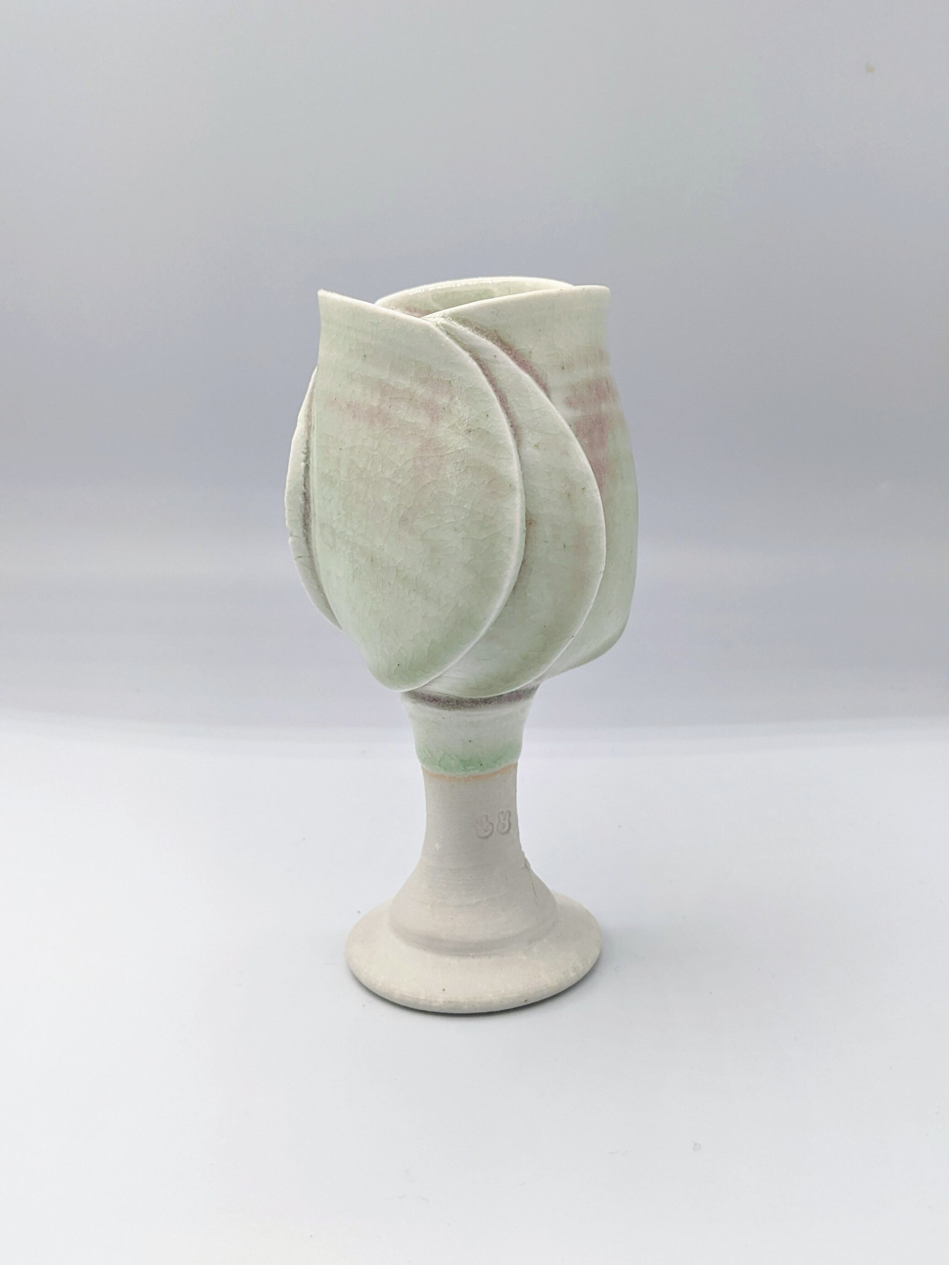 秋田の冬を思わせる青白い磁器を得意とする。数多くのキャリアや個展を経て、現在も秋田市太平山の麓で製作。近年では秋田の蔵元集団