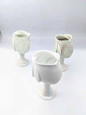 秋田の冬を思わせる青白い磁器を得意とする。数多くのキャリアや個展を経て、現在も秋田市太平山の麓で製作。近年では秋田の蔵元集団