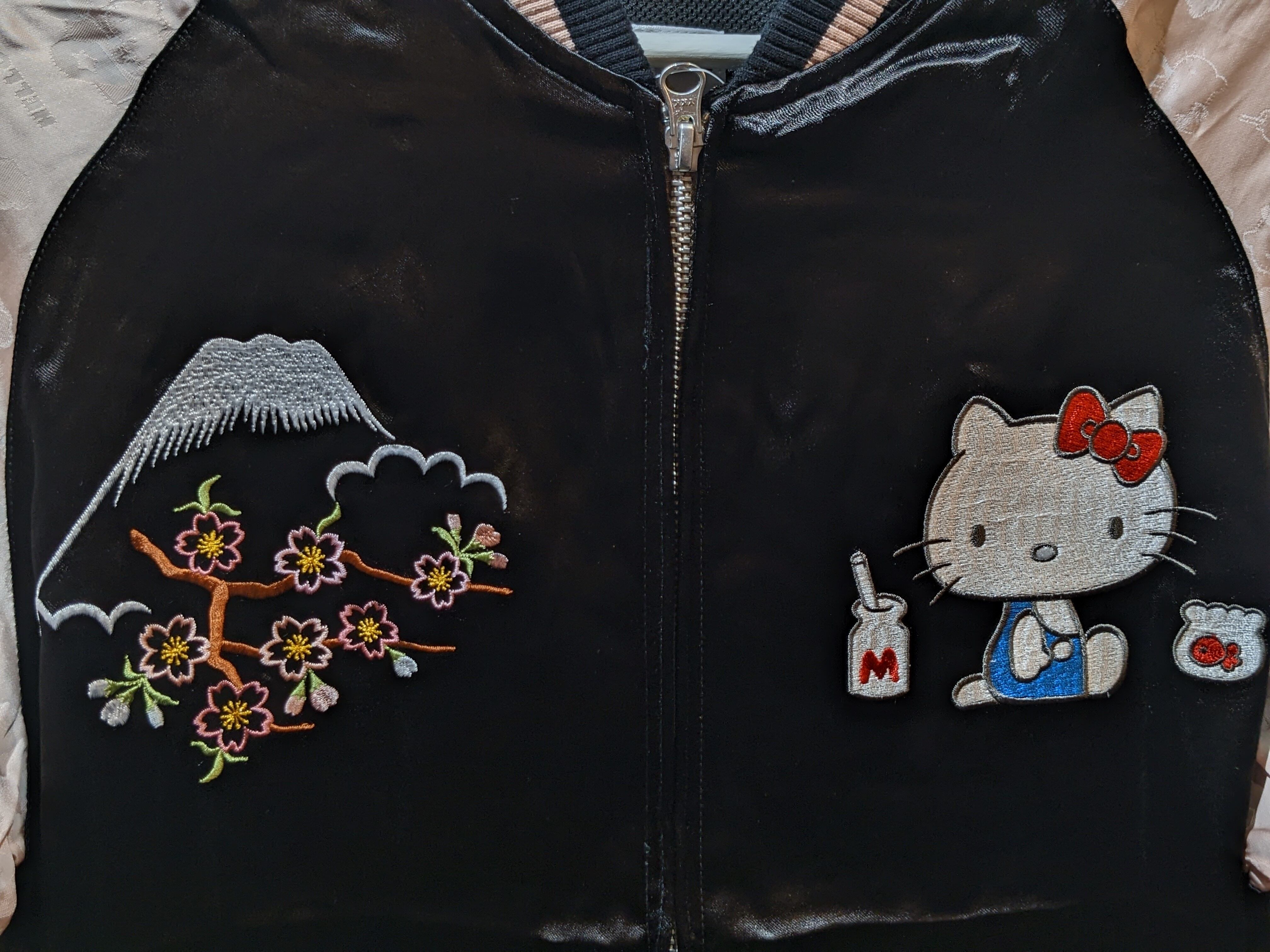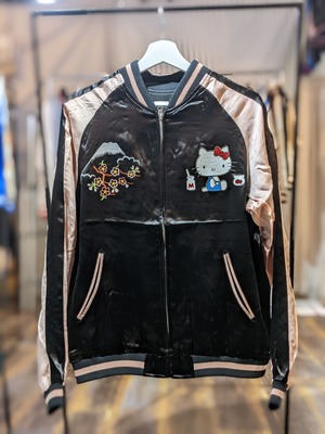 HKSJ-506 ハローキティと日本地図ジャガード袖 ブラック×ピンク M・L・XL・XXL