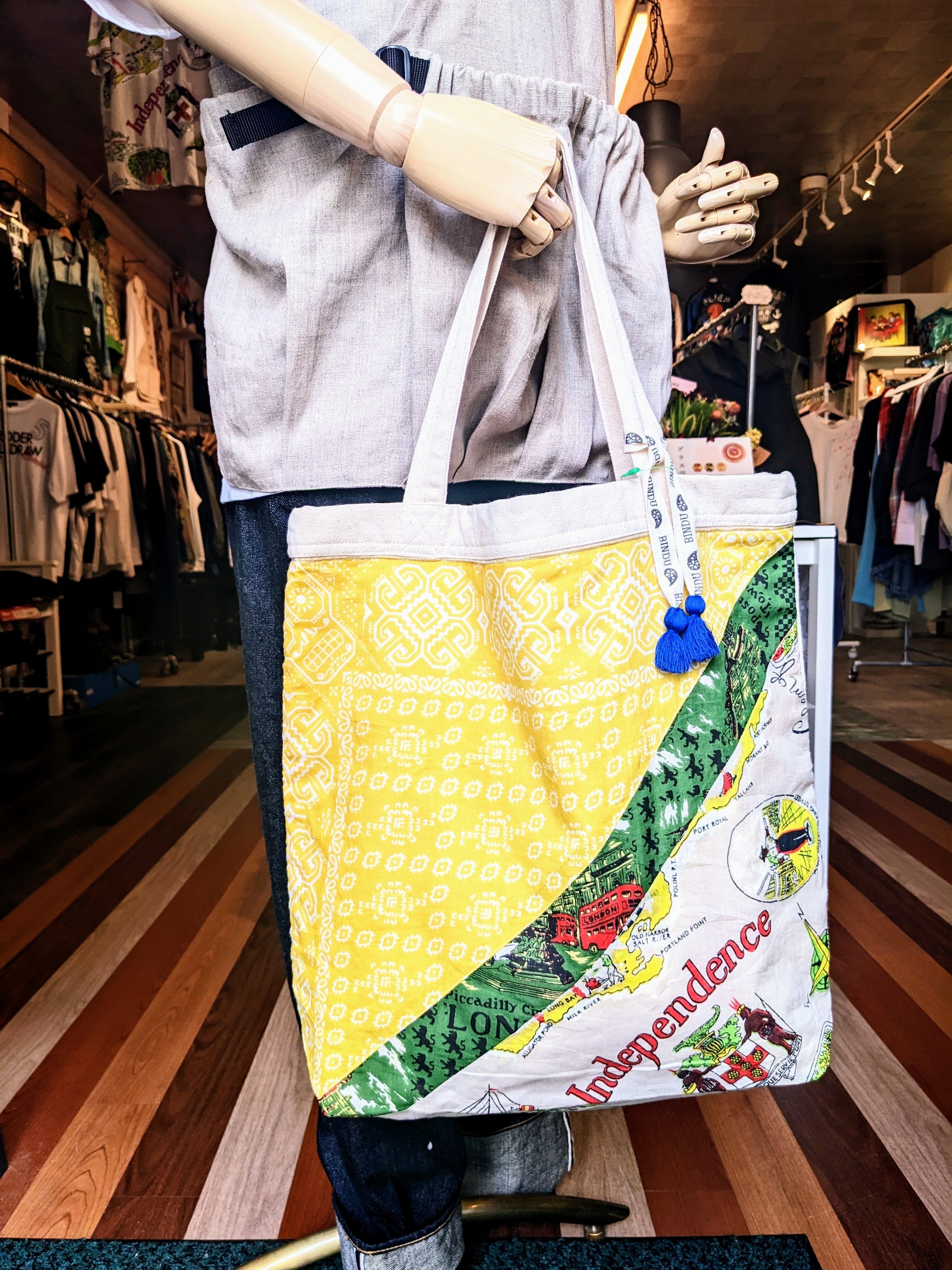 バック前面部分にビンドゥーのバンダナを貼り付けた、大きめなトートバックです。