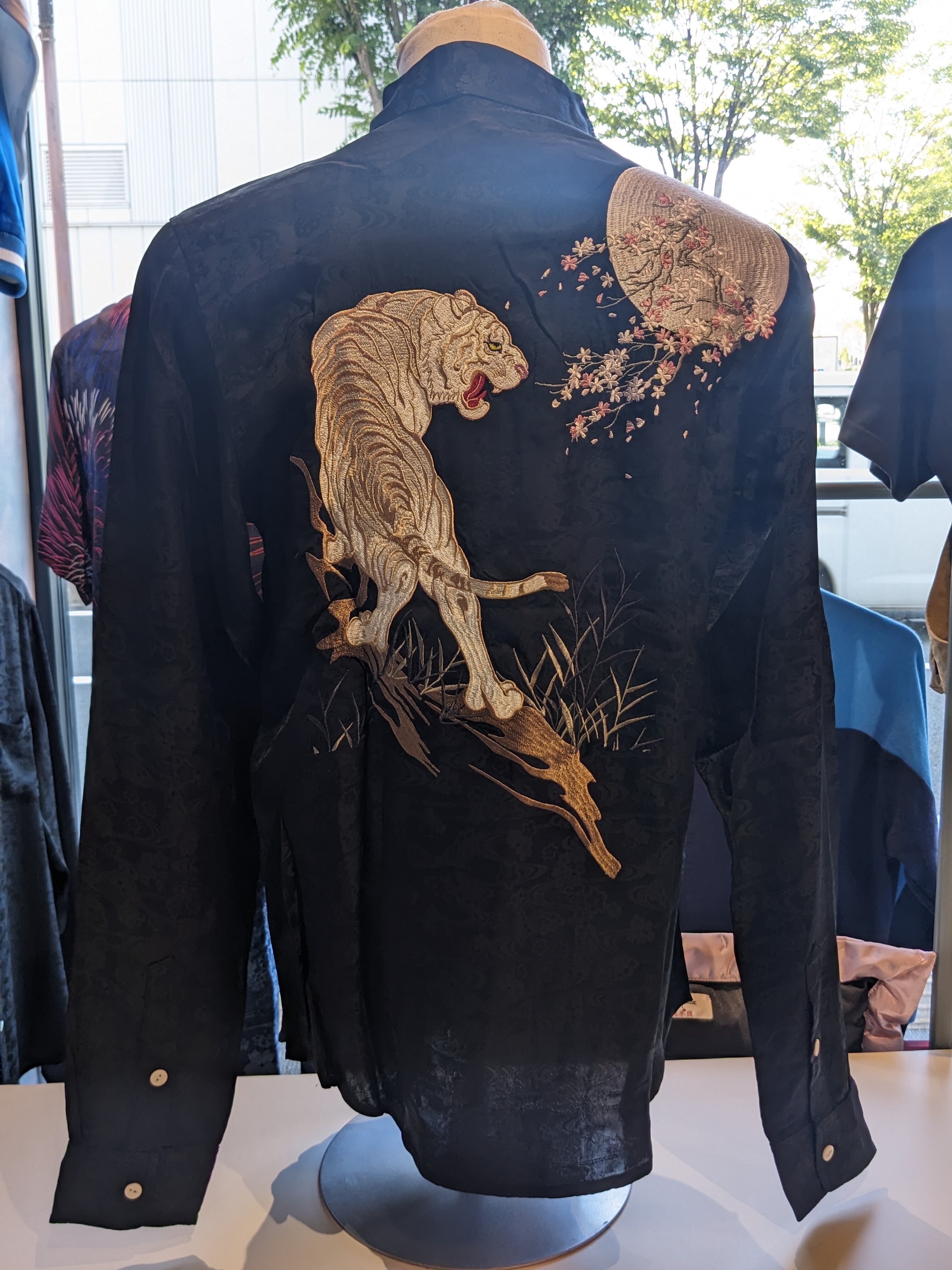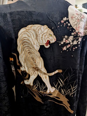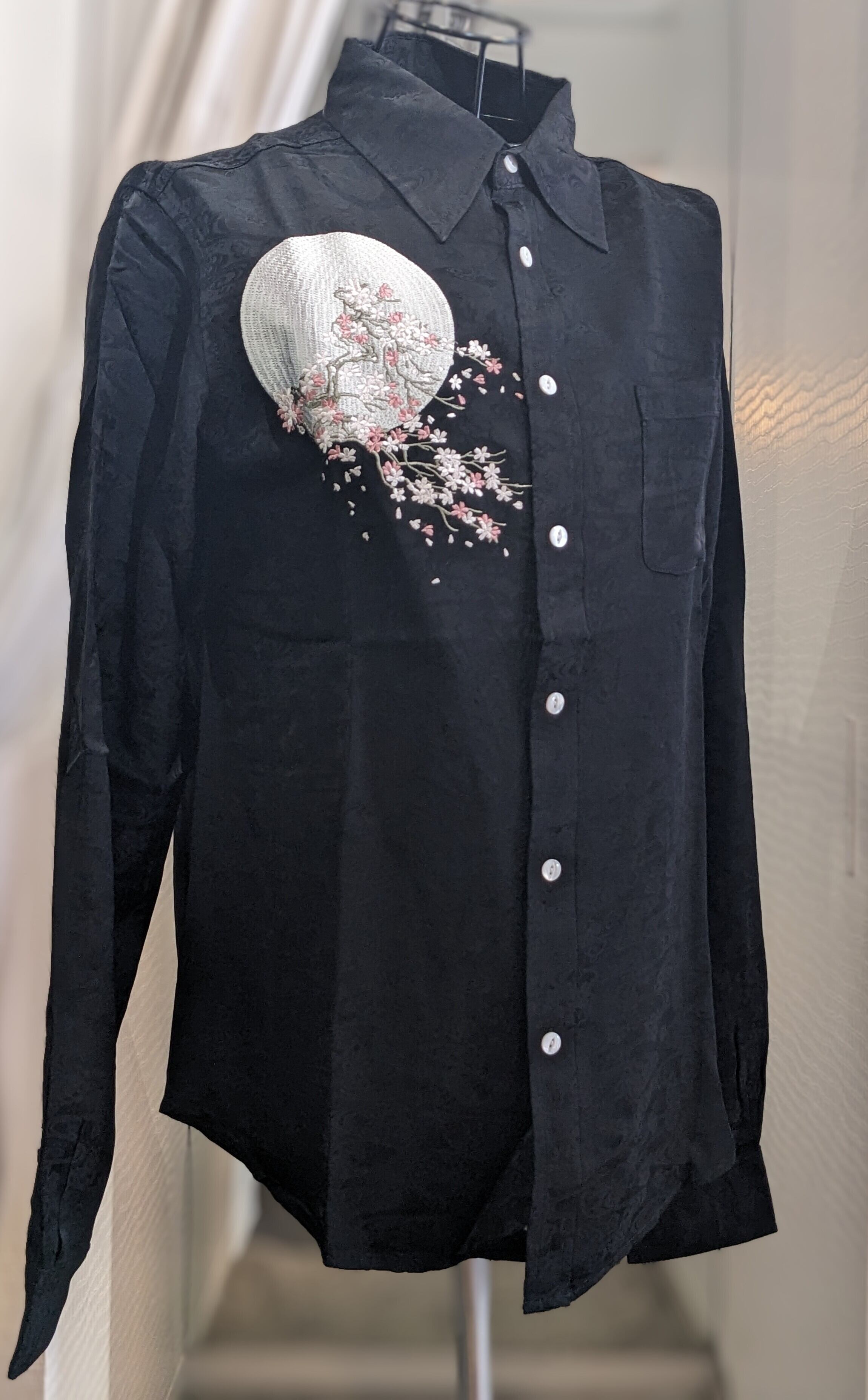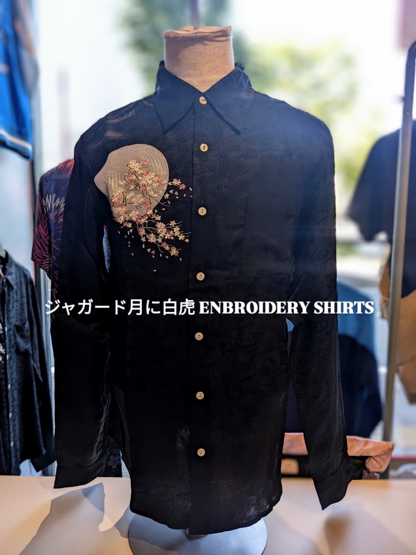 花旅楽団-新作長袖シャツ SS-002 月に白虎柄刺繍ジャガードシャツ ブラック