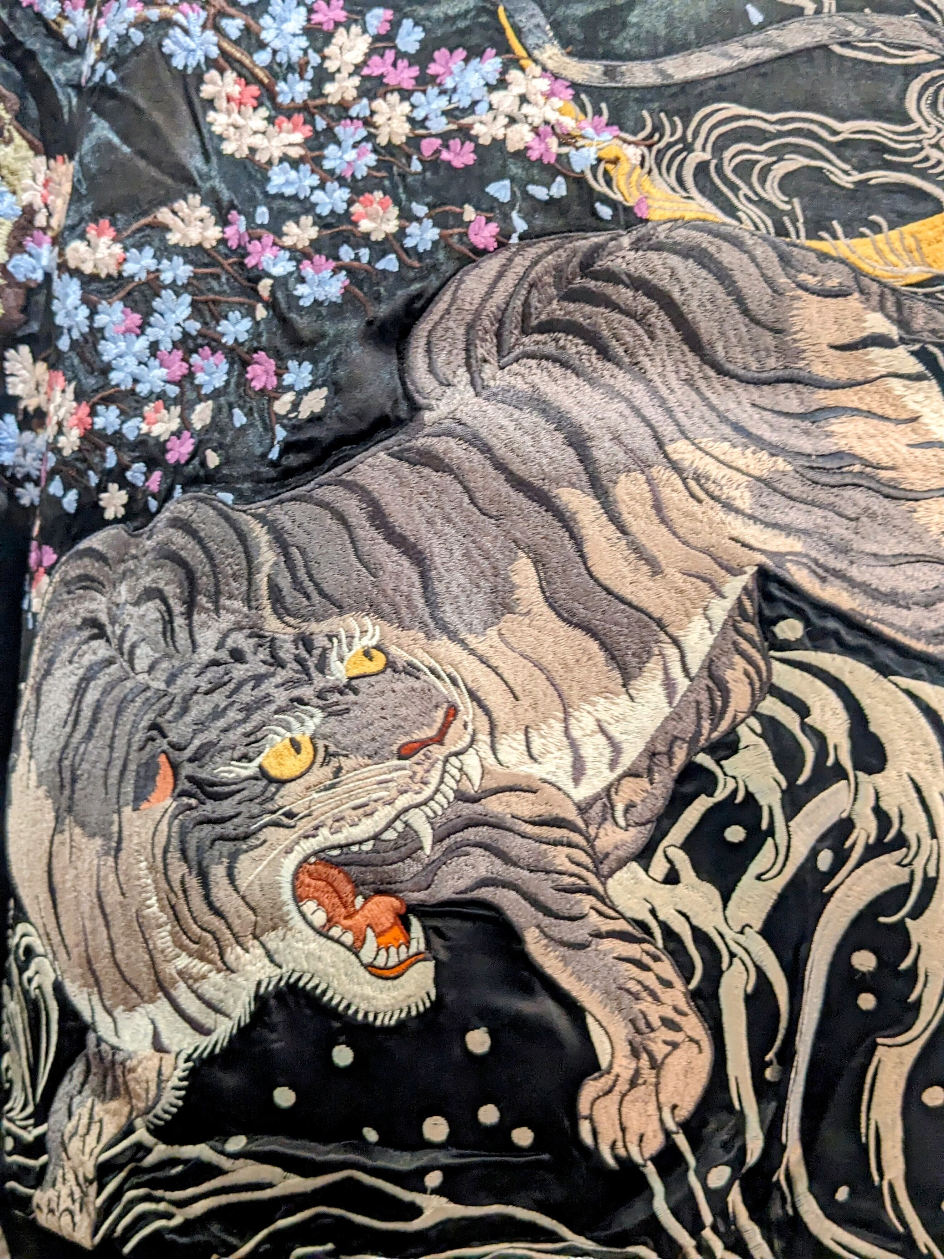 GKJ-002 桜と白虎 刺繍スカジャン ブラック XL