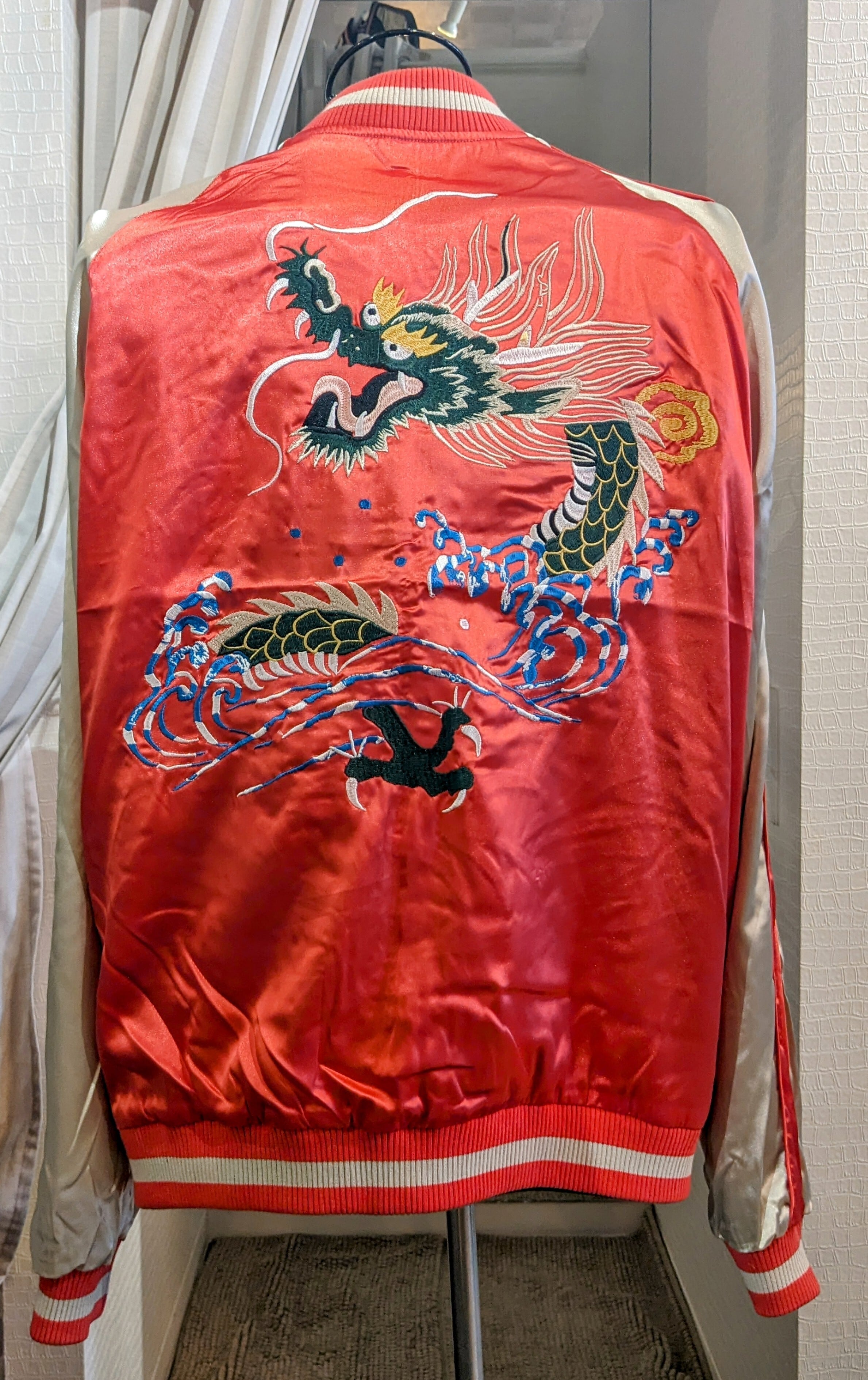JKSJ-003 ハワイと龍 刺繡リバーシブルスカジャン ブラック M・XL