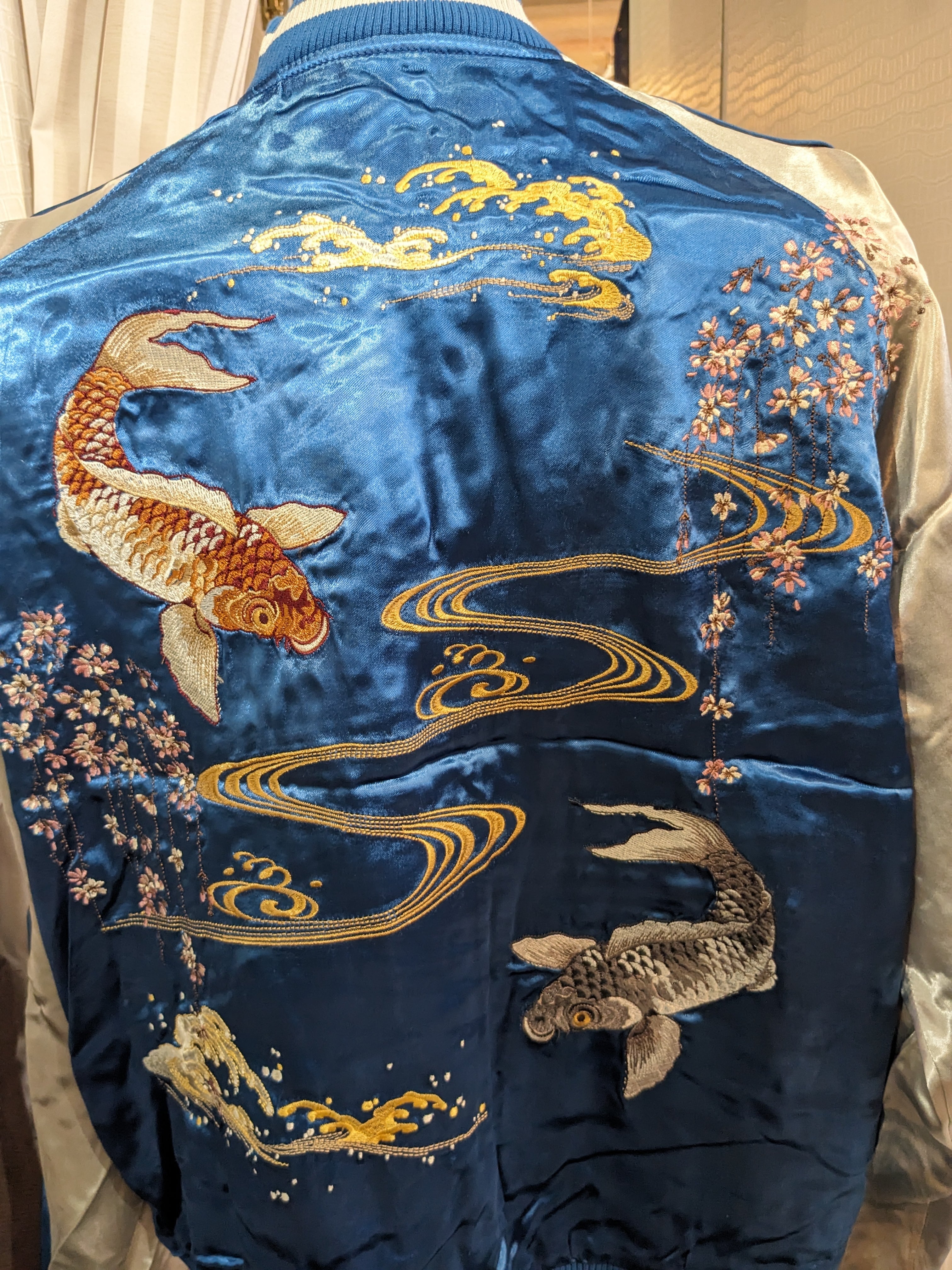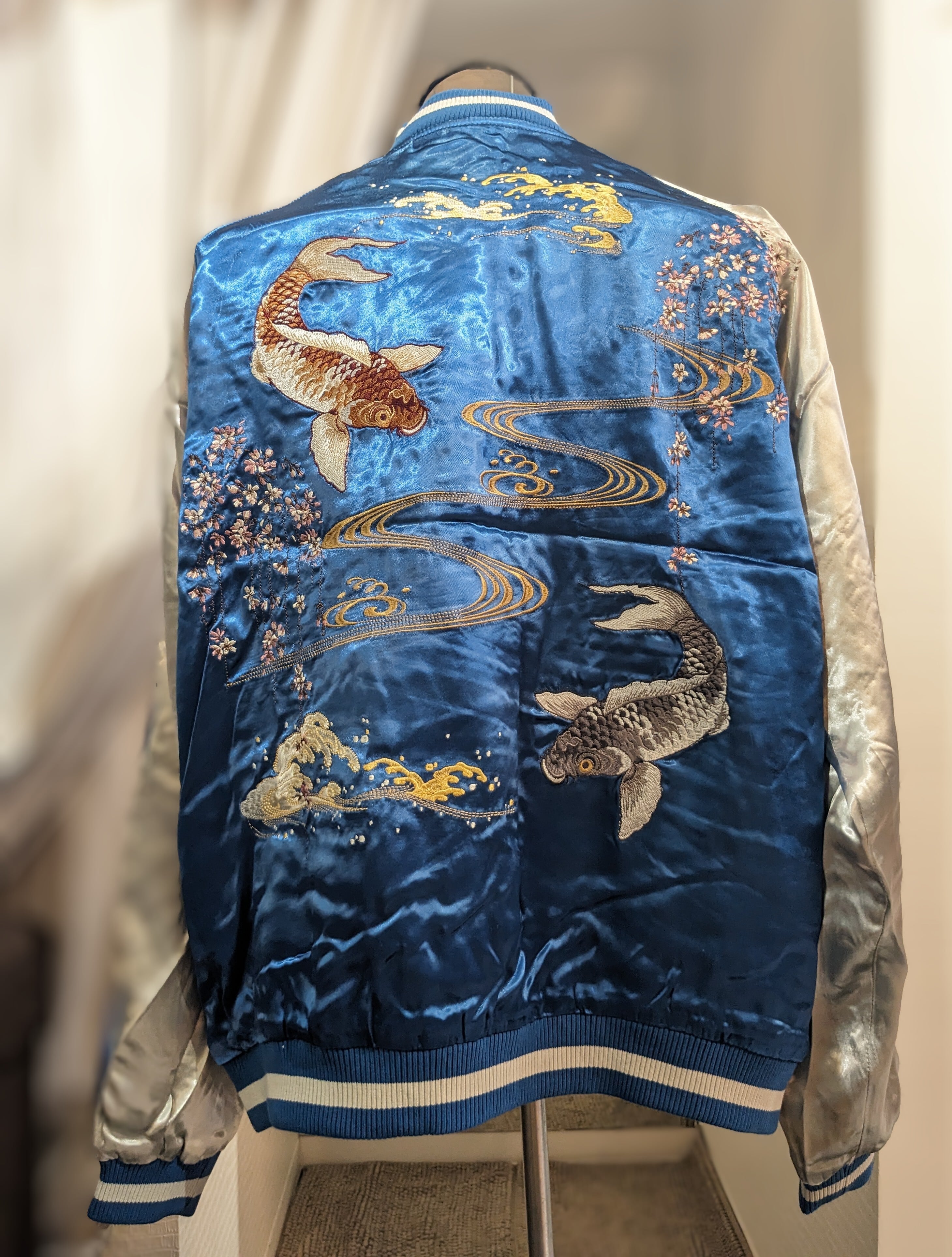 JKSJ-506 桜と鯉 刺繡スカジャン ブルー XXL