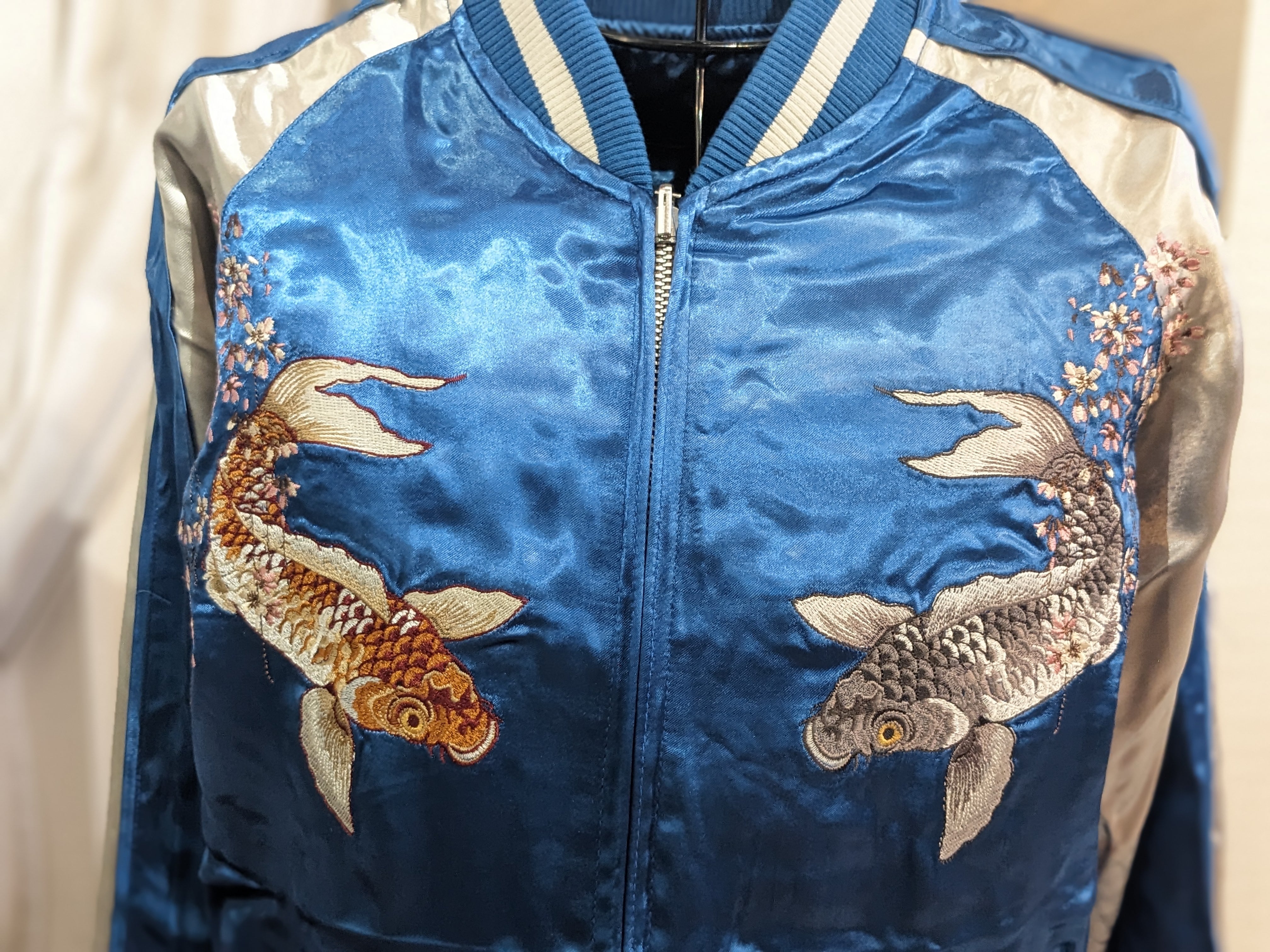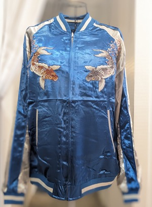 JKSJ-506 桜と鯉 刺繡スカジャン ブルー S・ M・L・XL・XXL