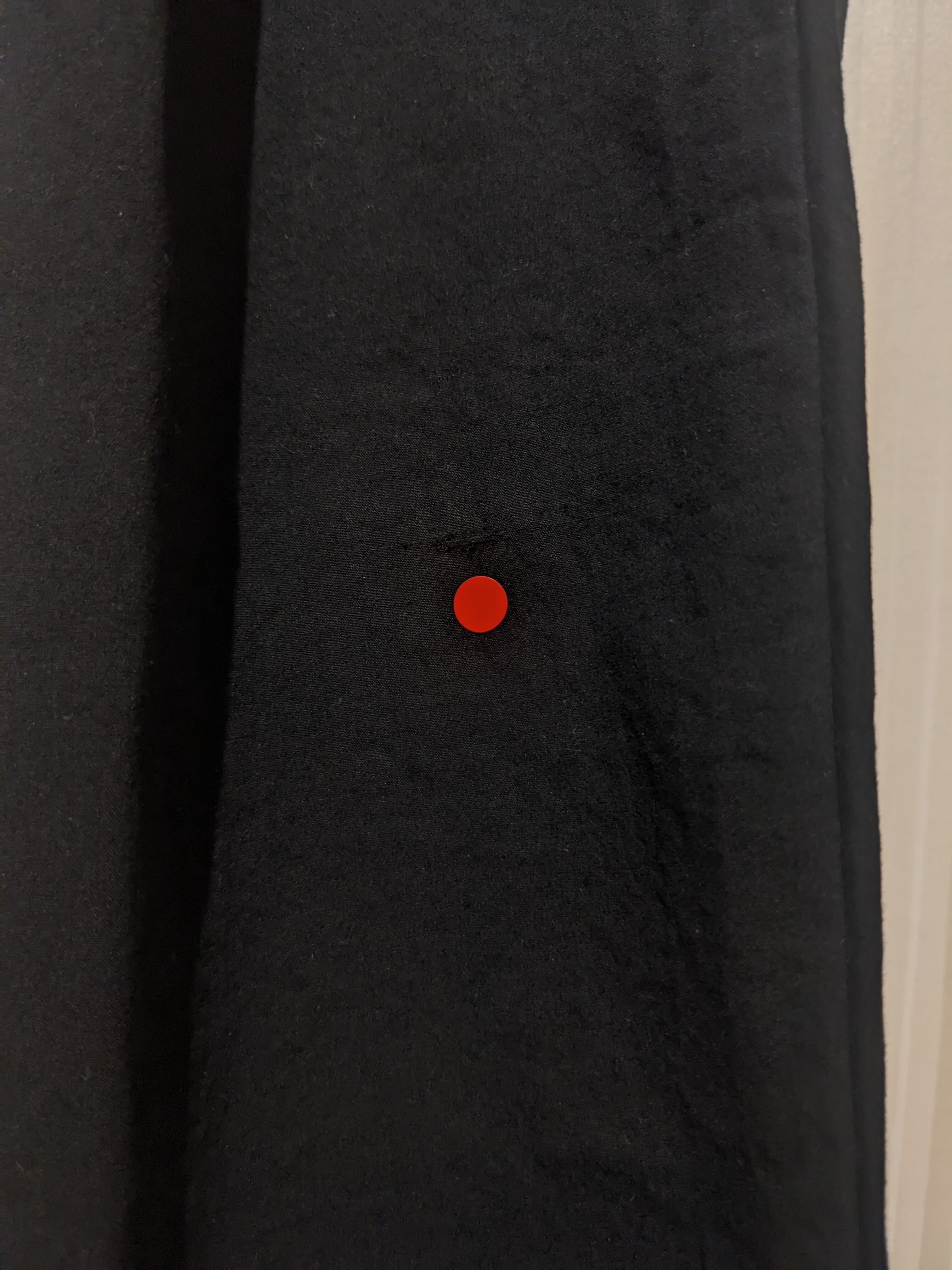 左側 裾から17㎝のところに1cmくらいの織りきずがあります。