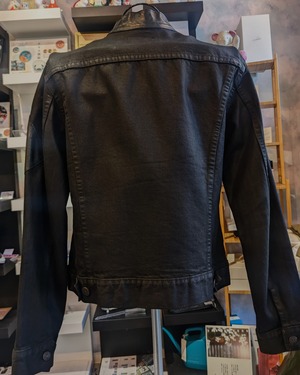 リーバイスのGジャンの首周りはレザー&ワンボタンをつけライダース風に。合わせには何とYKKのジップ使い、ボタンでしめる事も可能です。