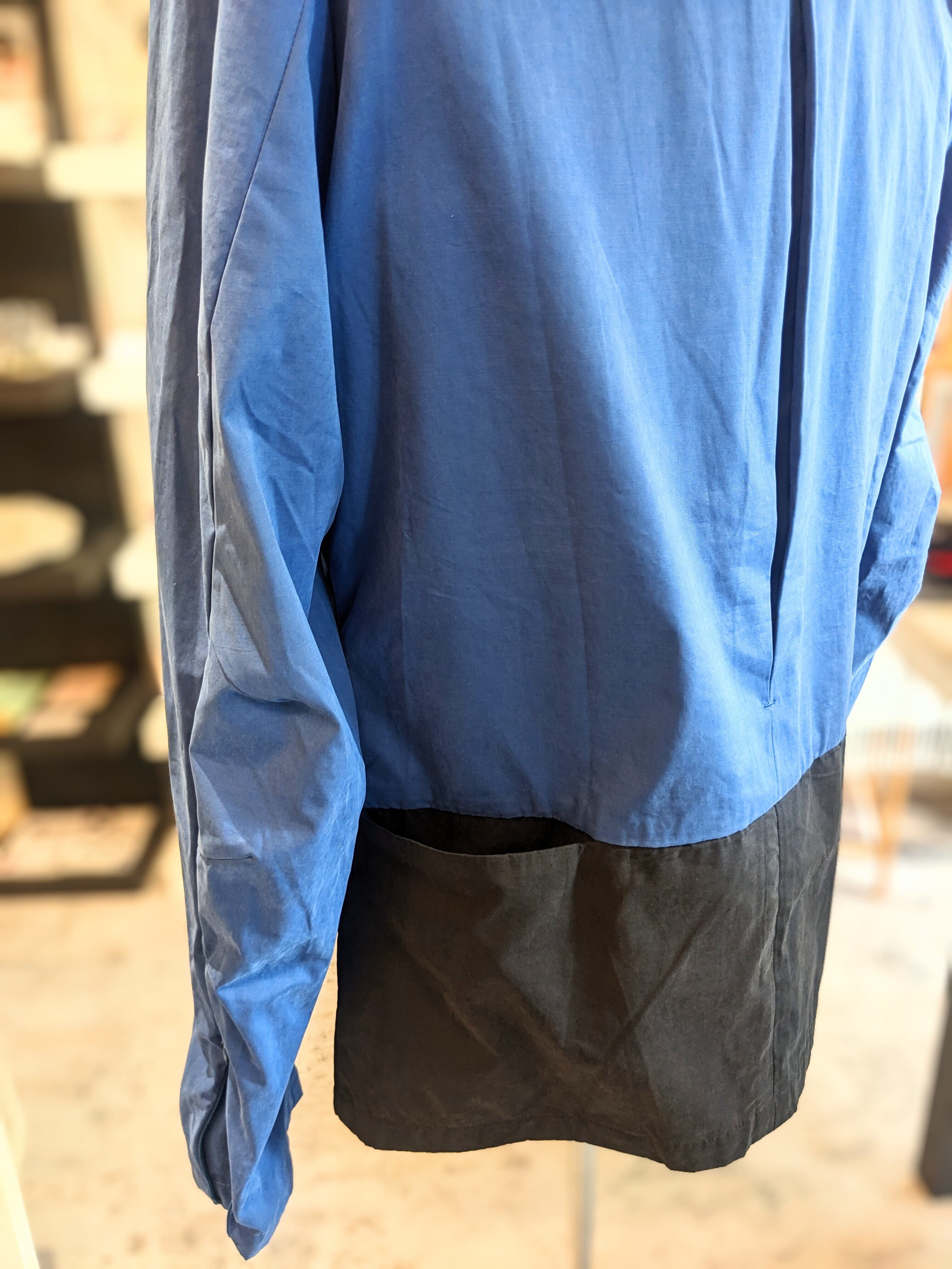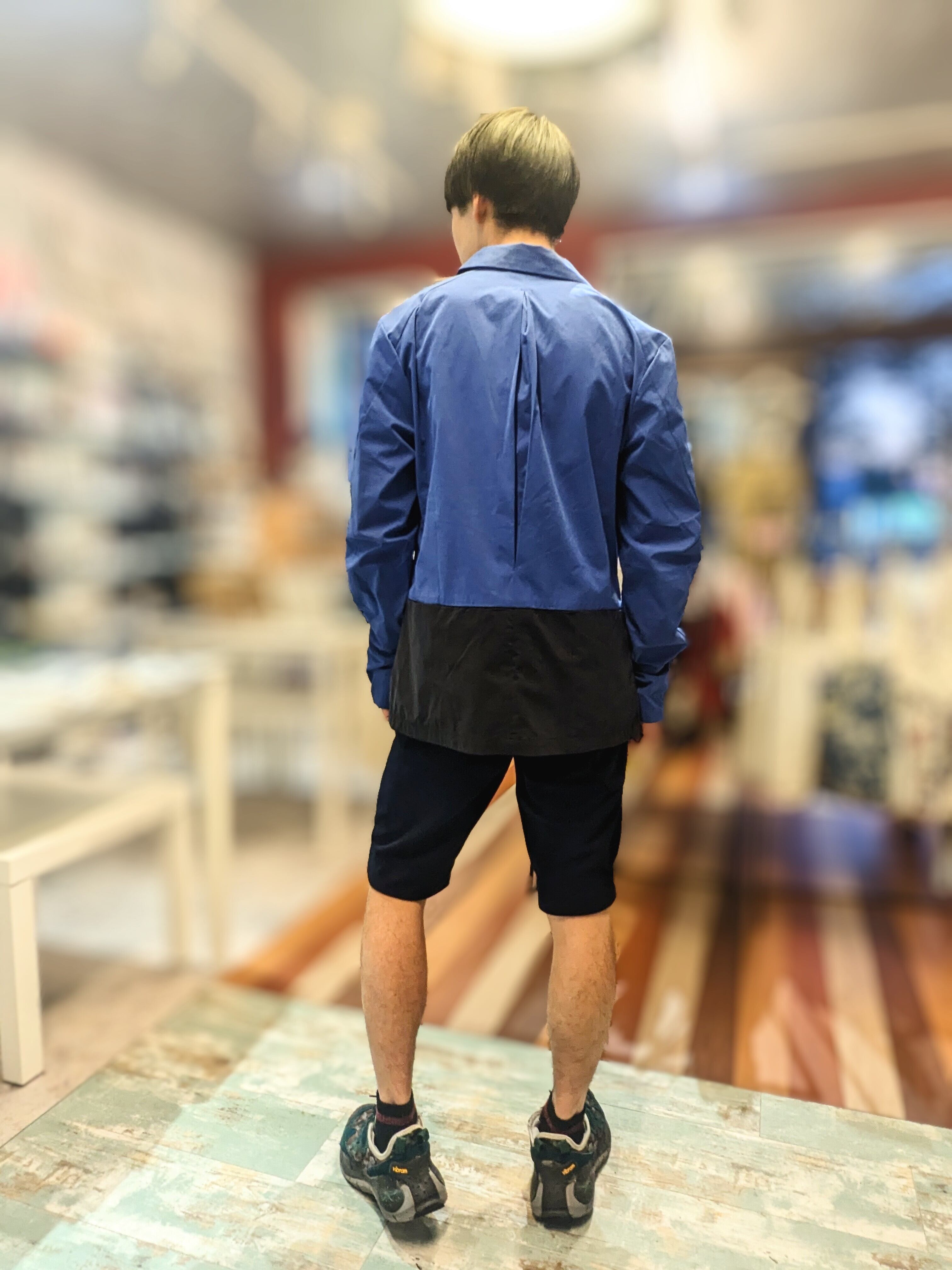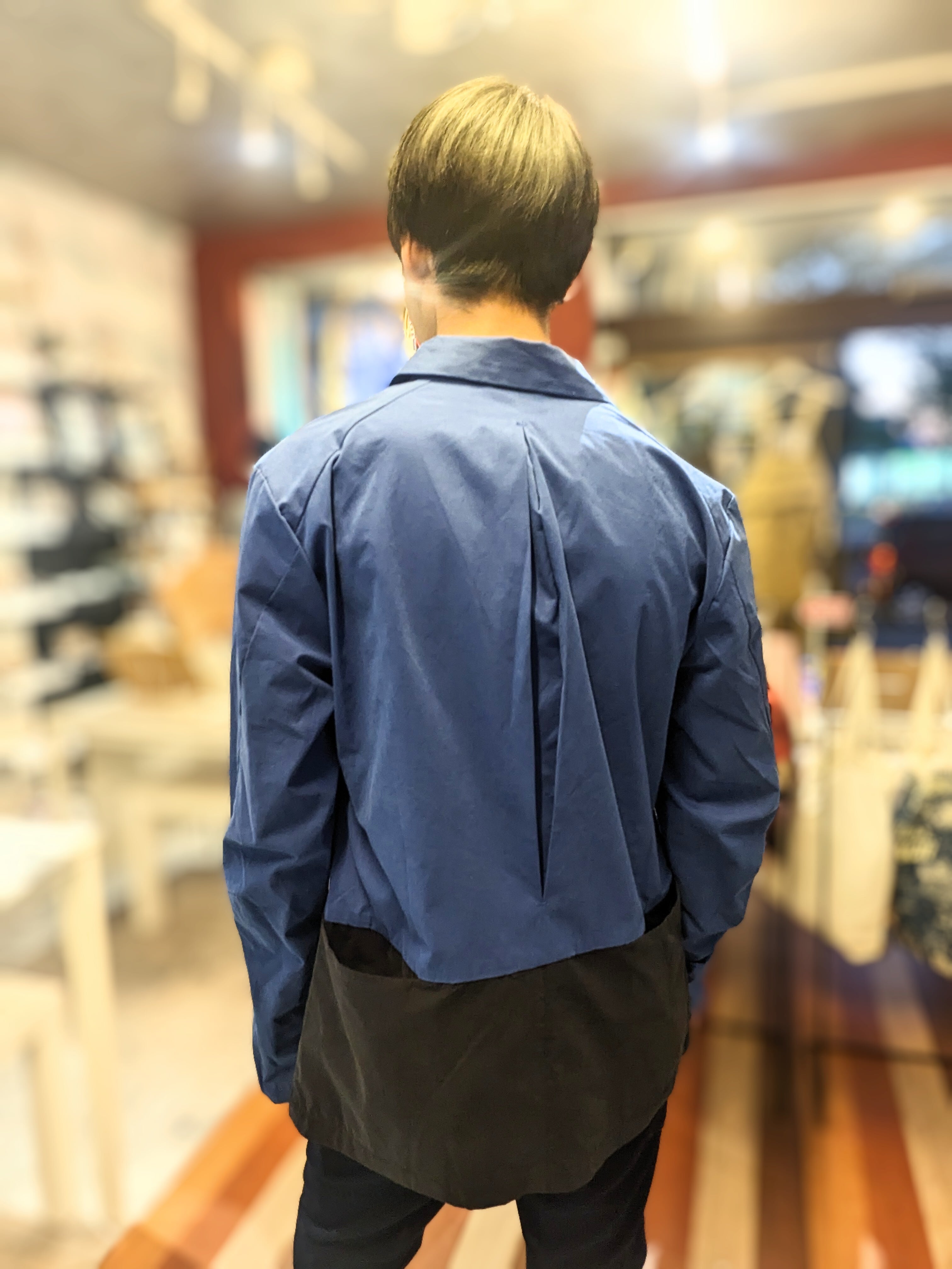このバイカラーカバーオールジャケットはしっかり見返しを取り ミニマルなデザインかつ