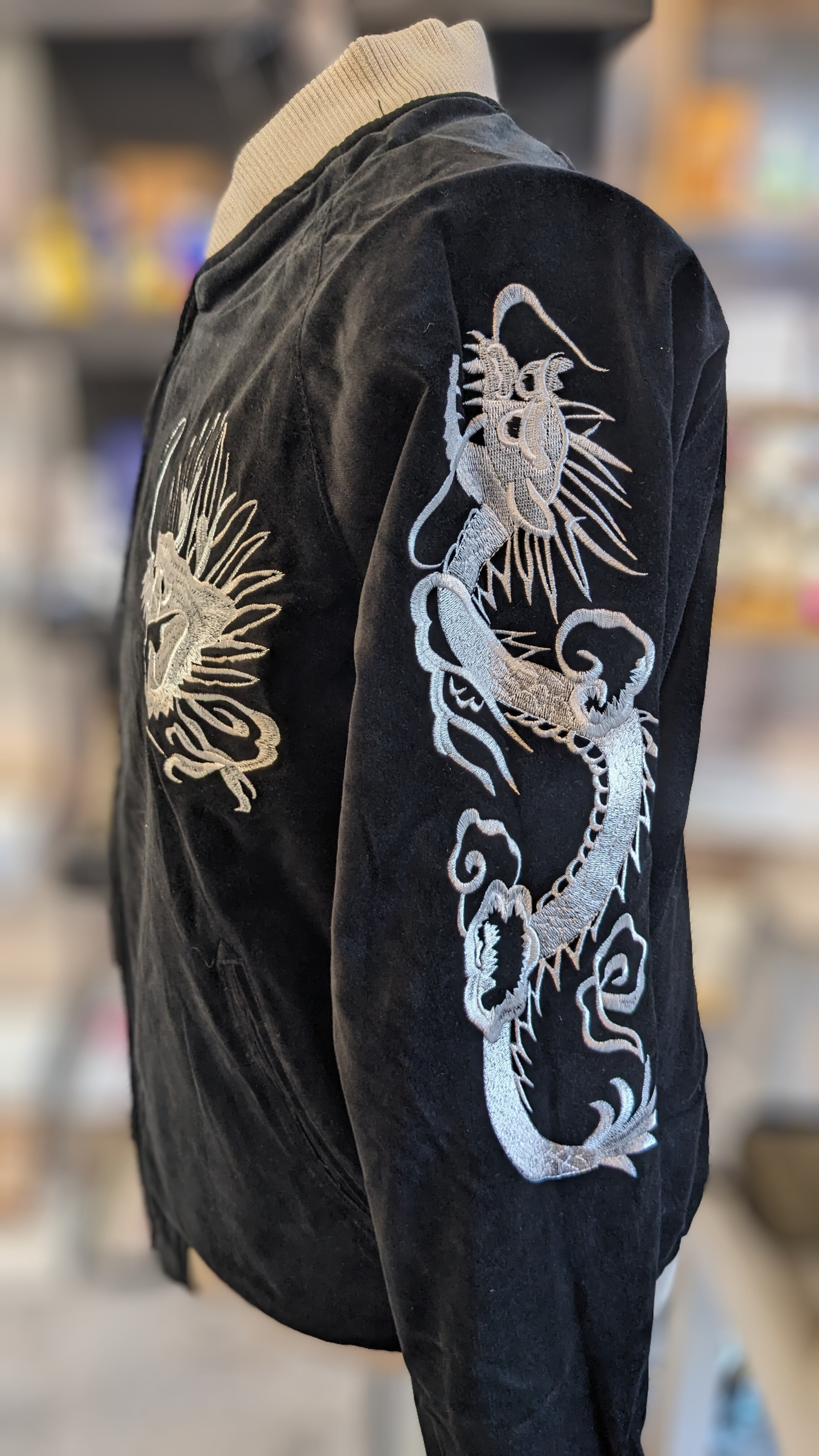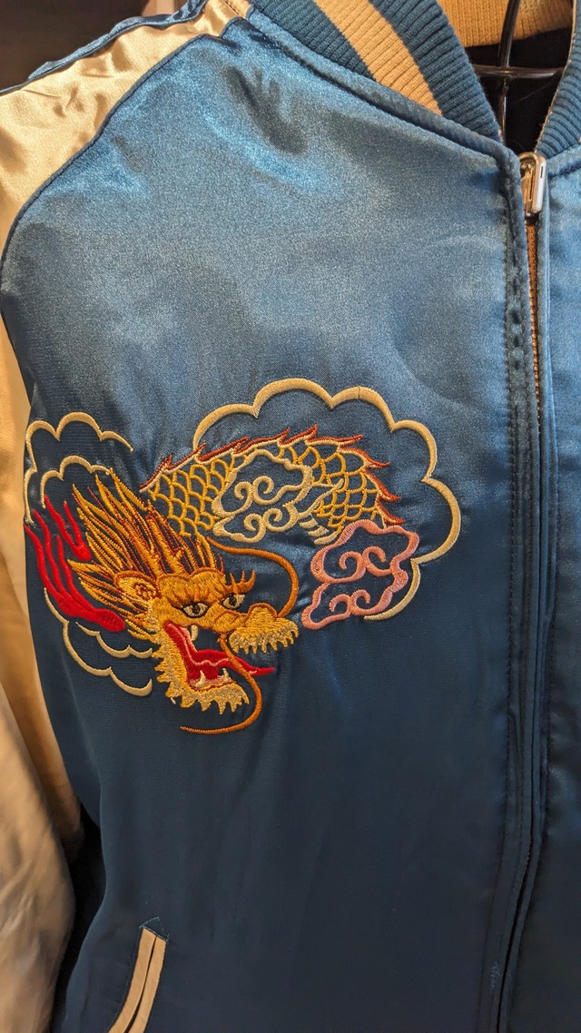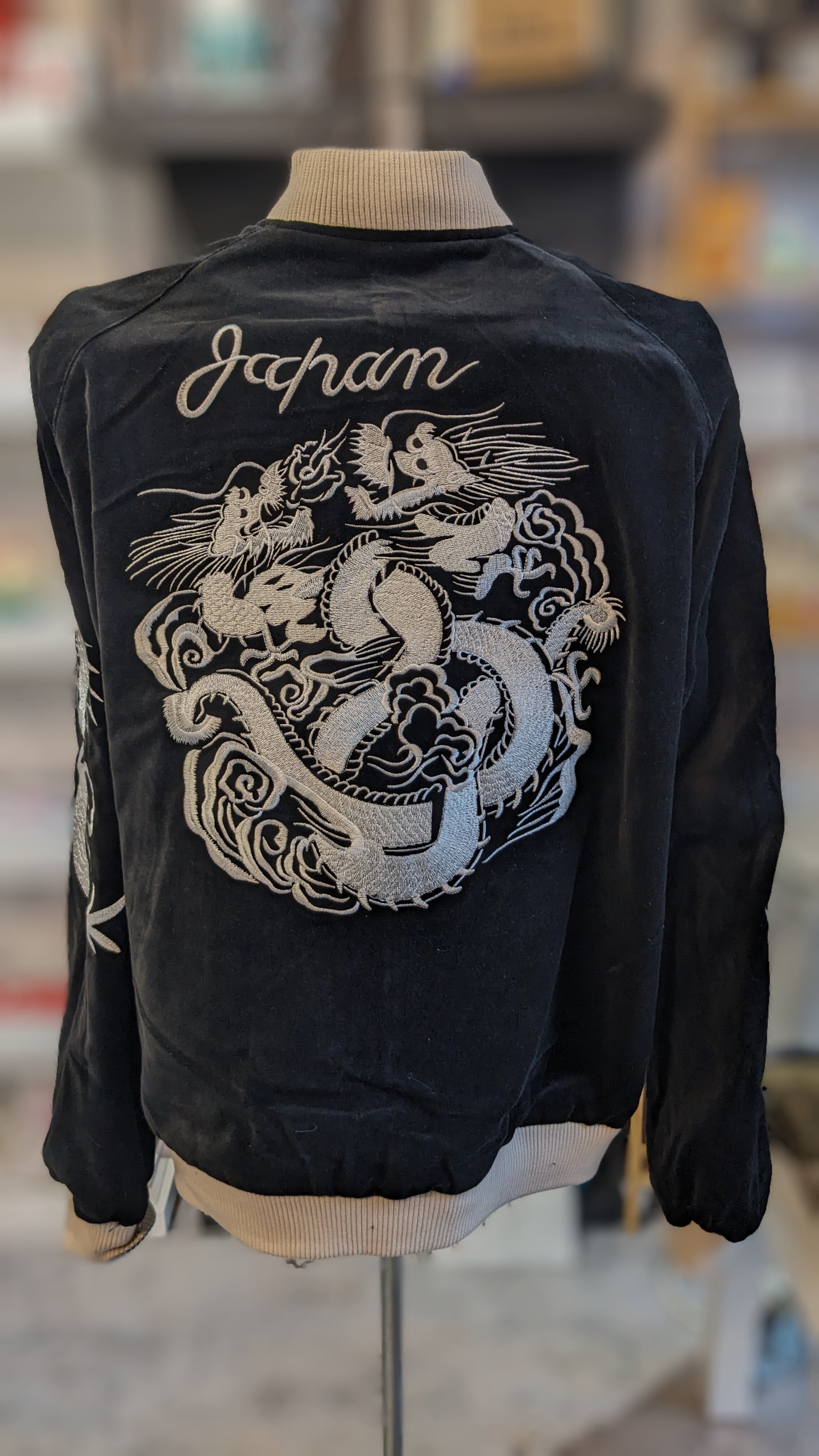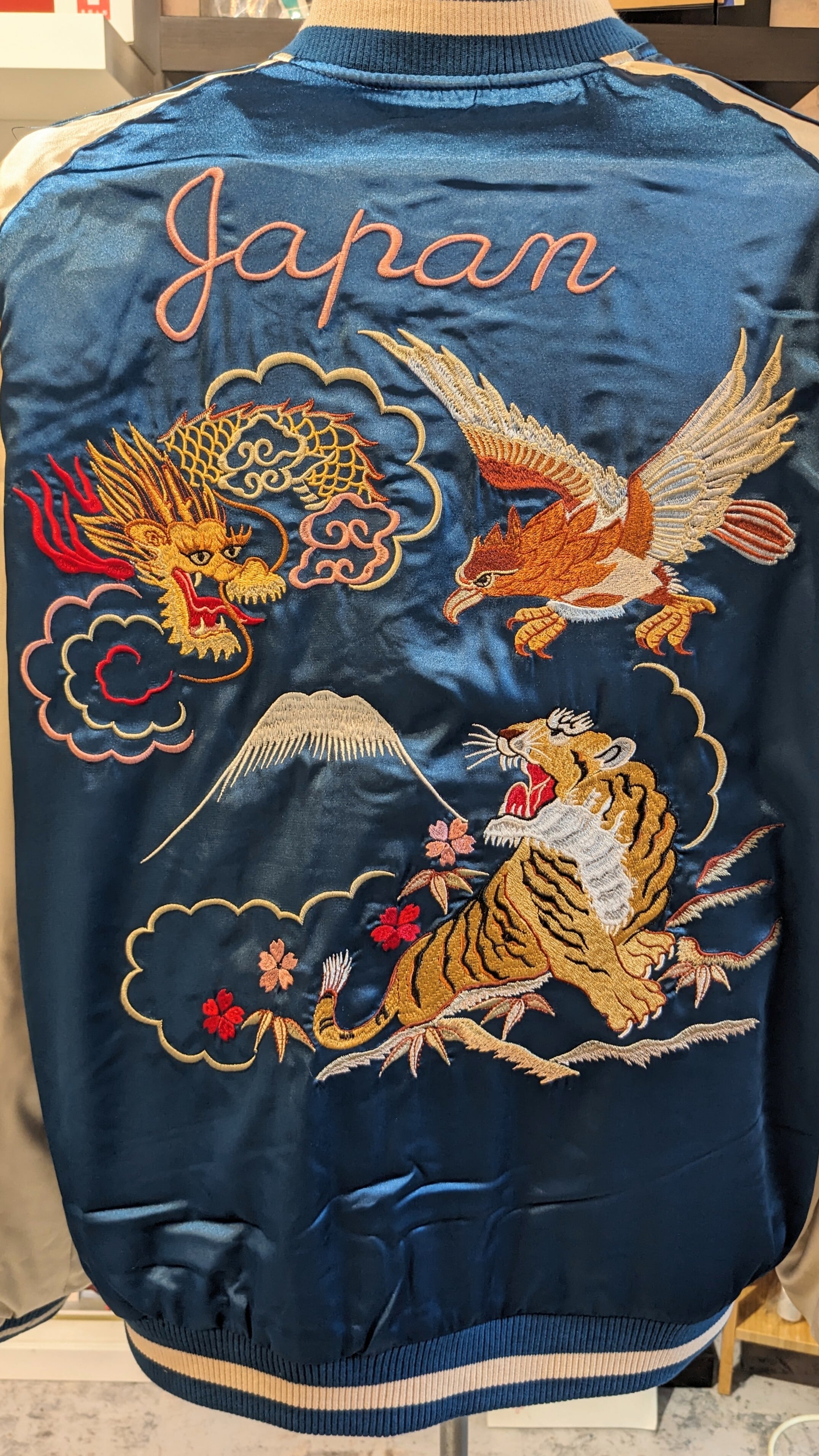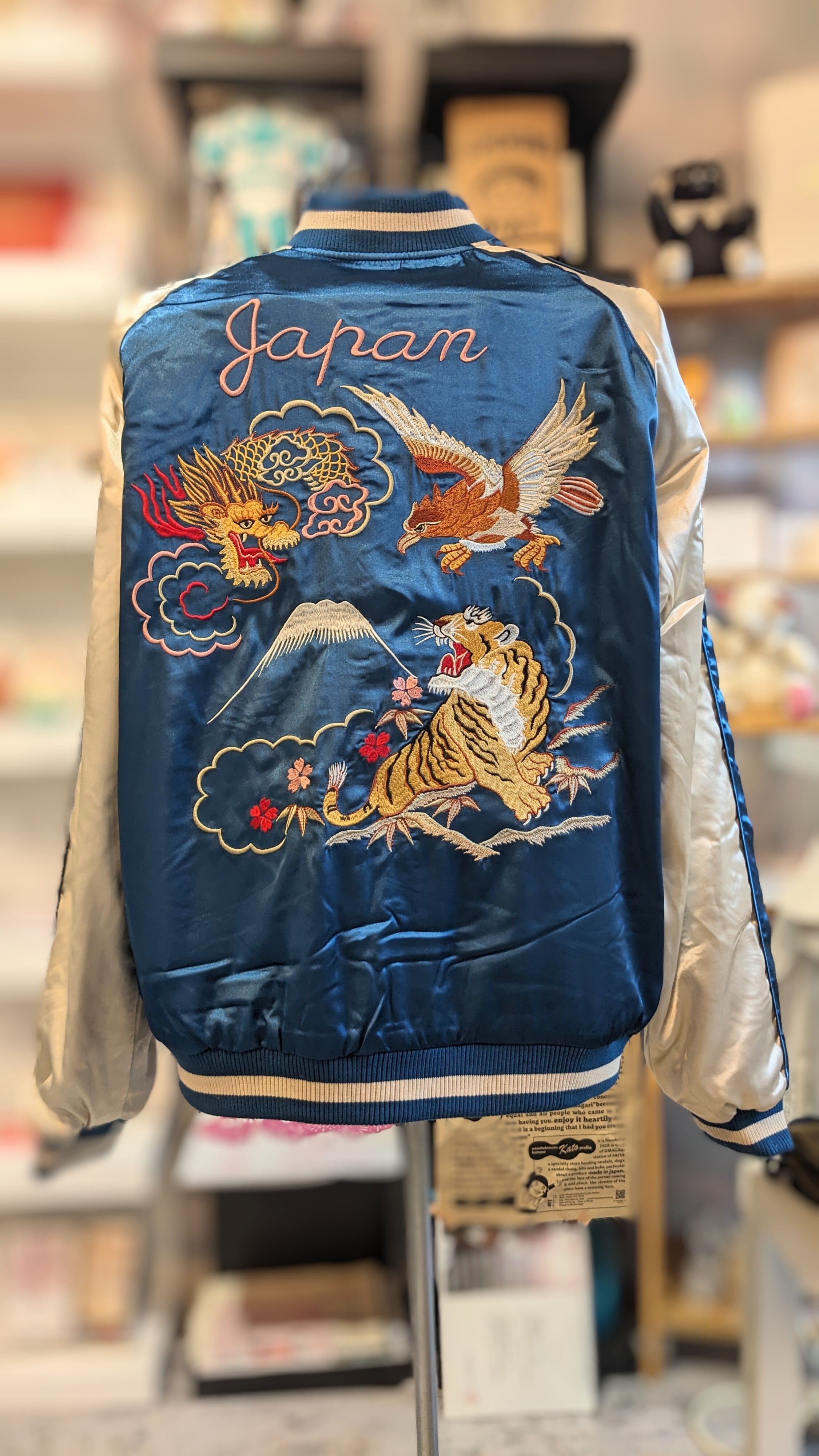 JSKJ-006 鷹虎龍刺繡サテン/別珍リバーシブルスカジャン ブル- S/M/L/XL/XXL