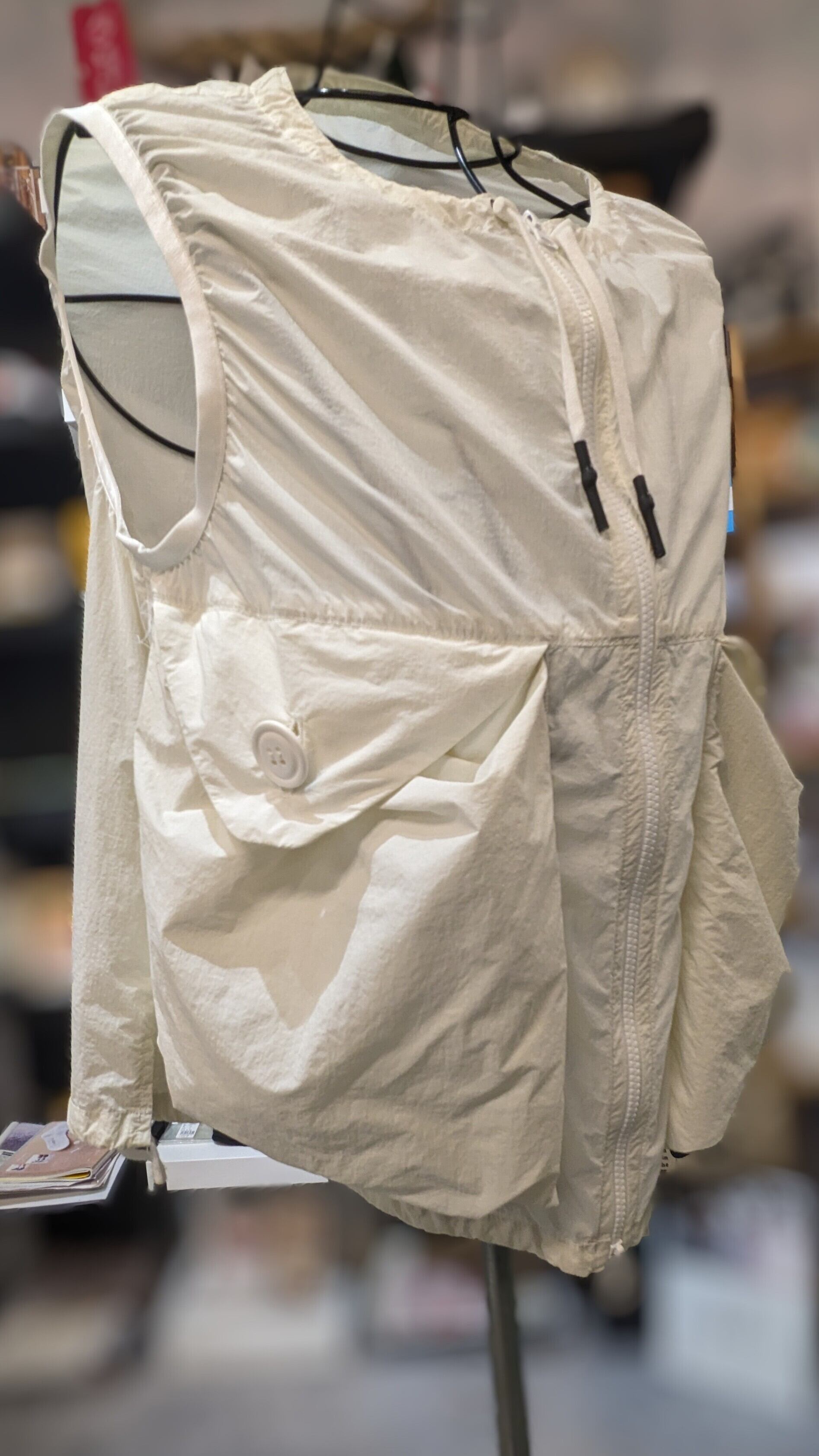 大容量の両側のポケットが特徴のこのベスト。